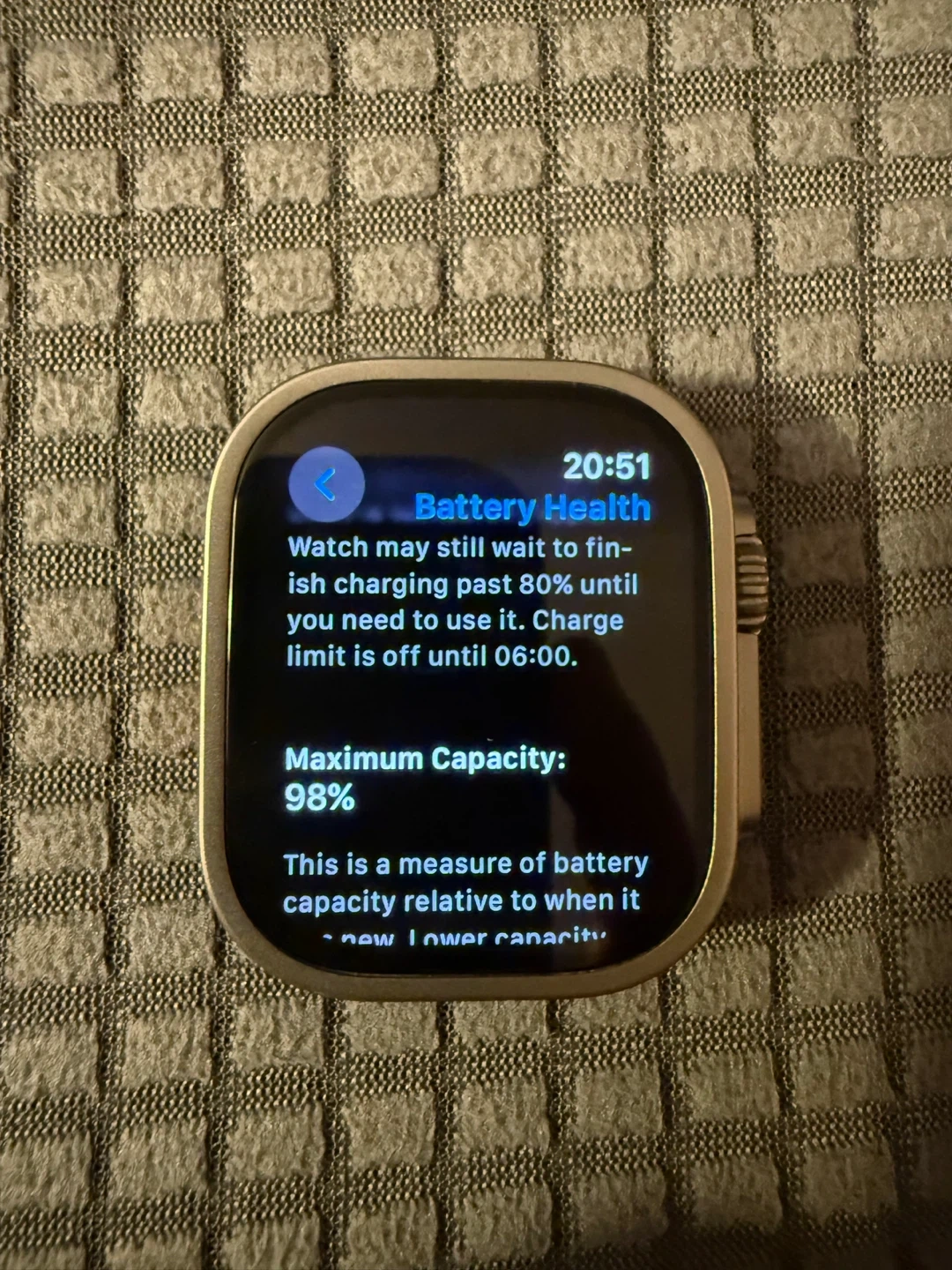 Selling my Apple Watch Ultra gen 1. In mint condition with no scratches. Battery life is 98% Comes with third party charger and strap. I also have the original box if needed.