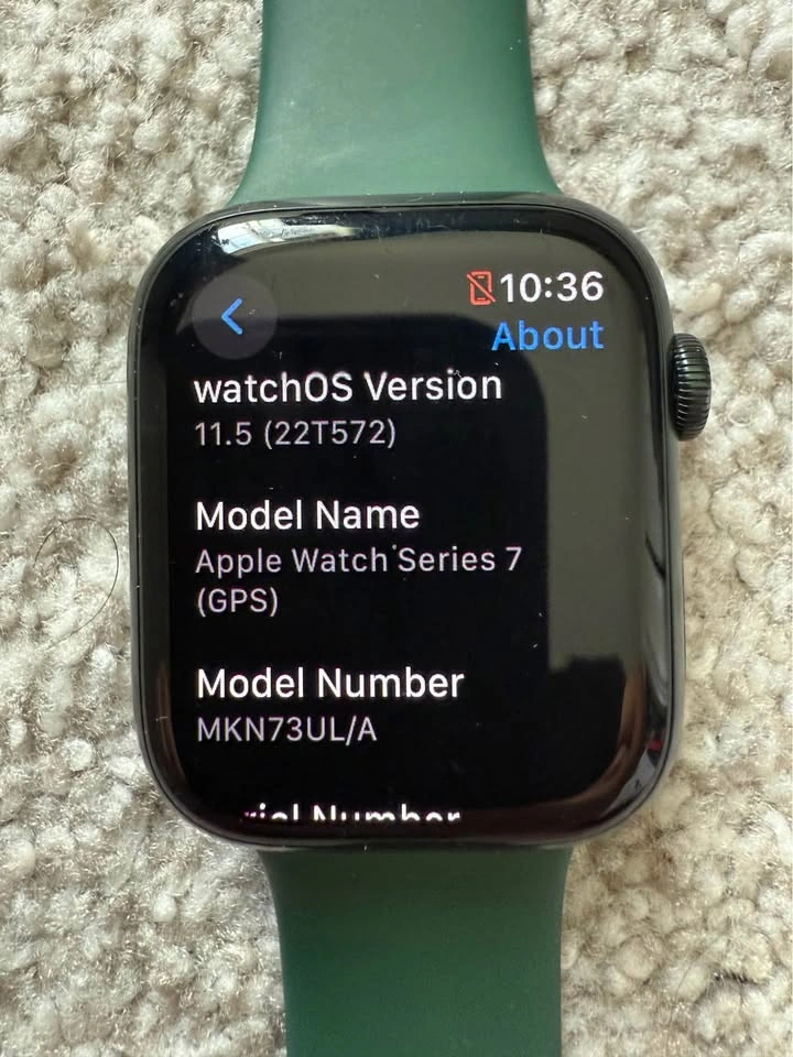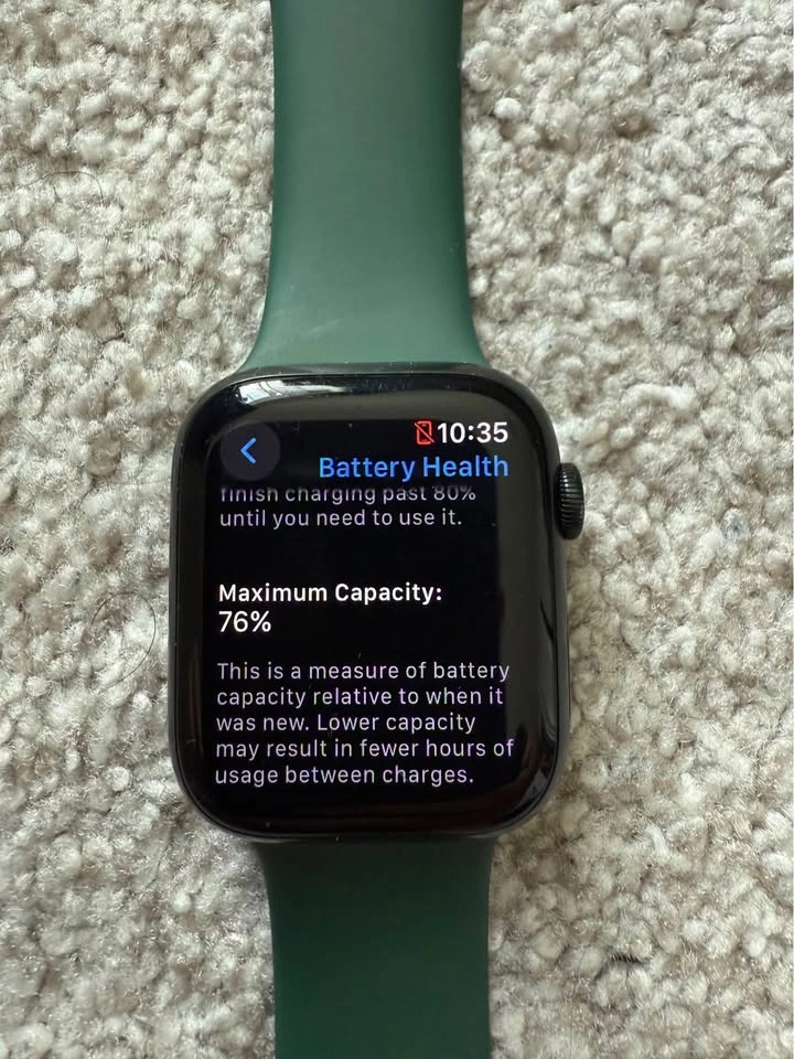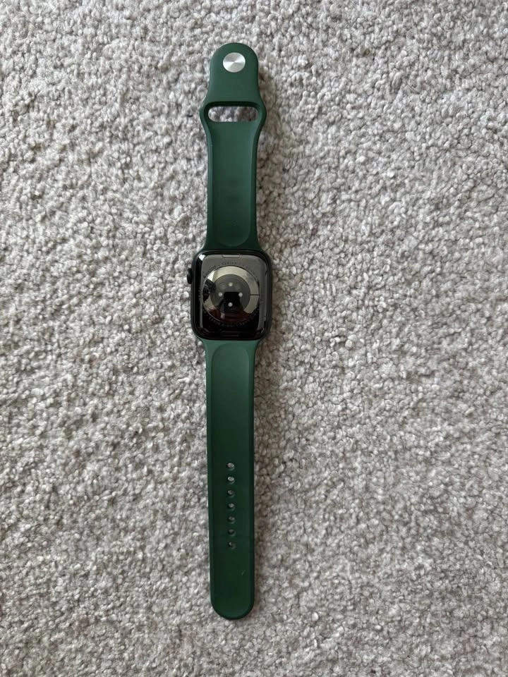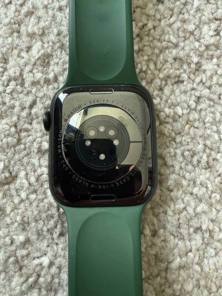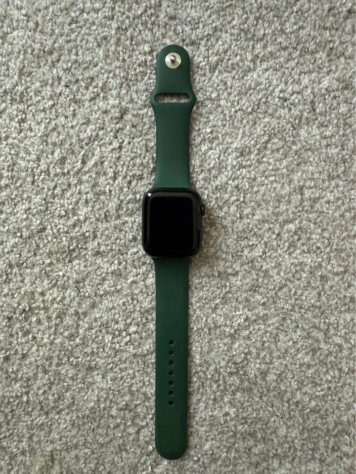 65Apple Watch Series 7 – 45mm (GPS) – Green Aluminum Case with Ion-X Glass Very good condition — fully functional and well cared for. Comes with original Apple sport band and original magnetic charger. I can also include extra bands if needed. No cracks or major scratches. Works perfectly and ready to pair with your iPhone.