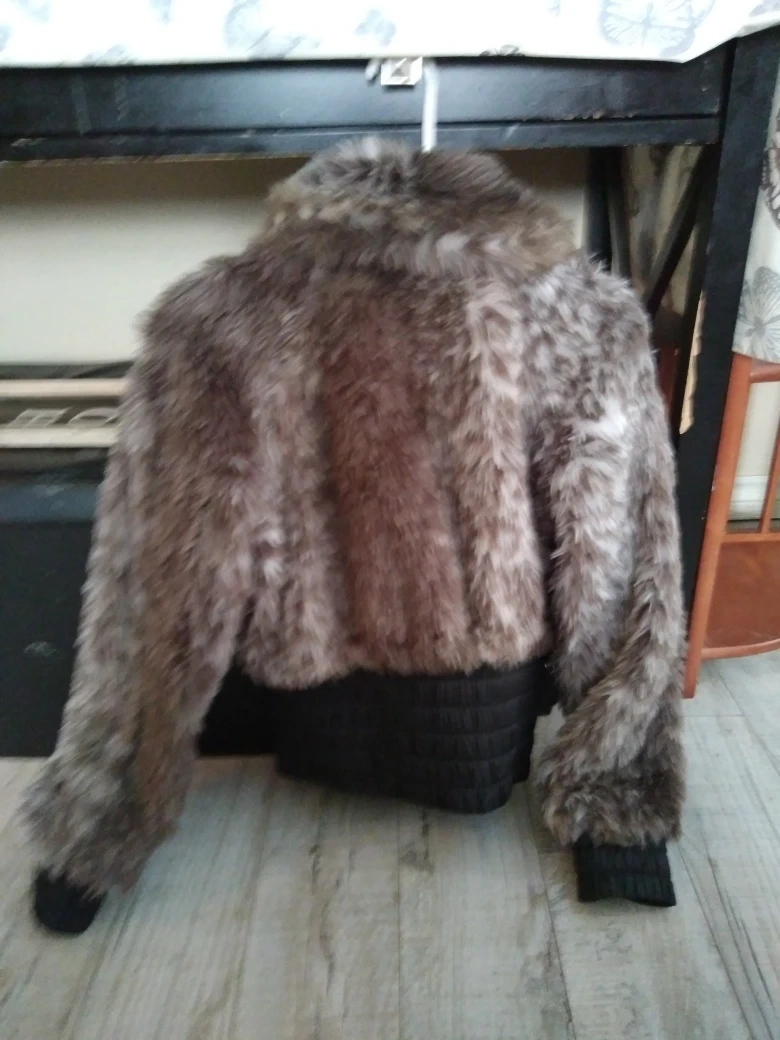 I'm selling a couple jackets. One is a black jacket with stars and the other is a brown faux fur jacket. The black jacket has a logo but the brand is not clear. The other black jacket has the brand name Apple Bottoms. not for $5 dm for price no lowballing reasonable offer only