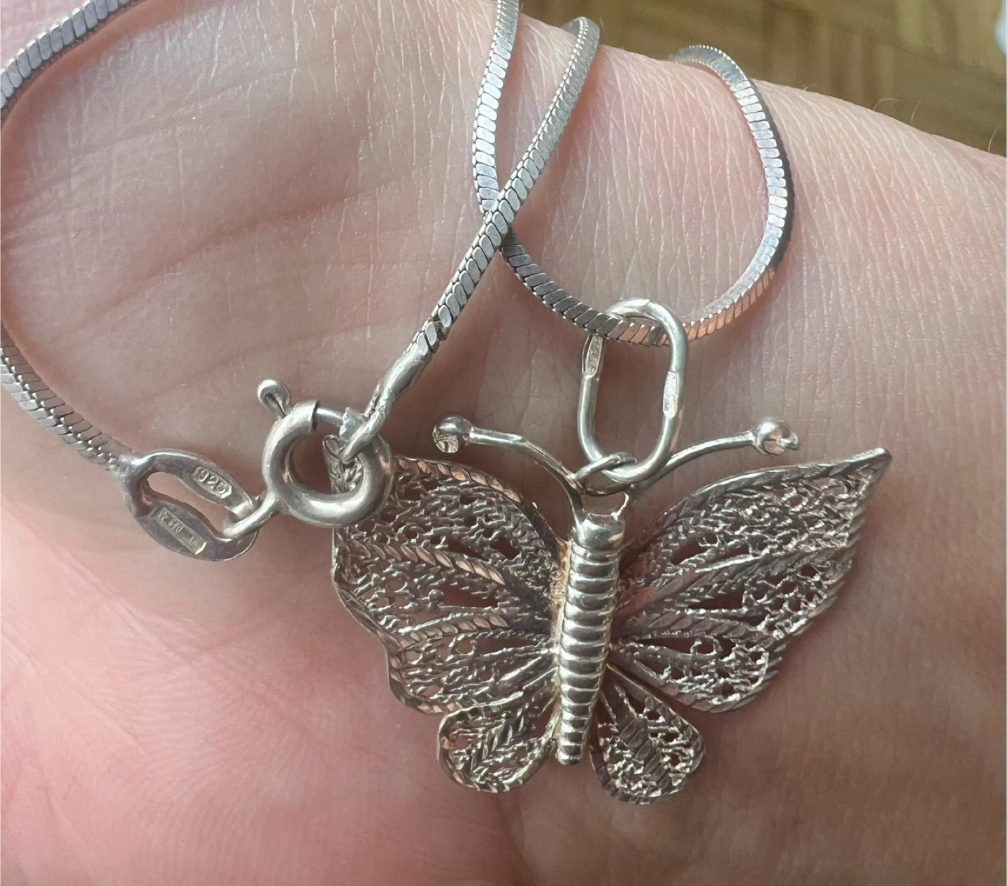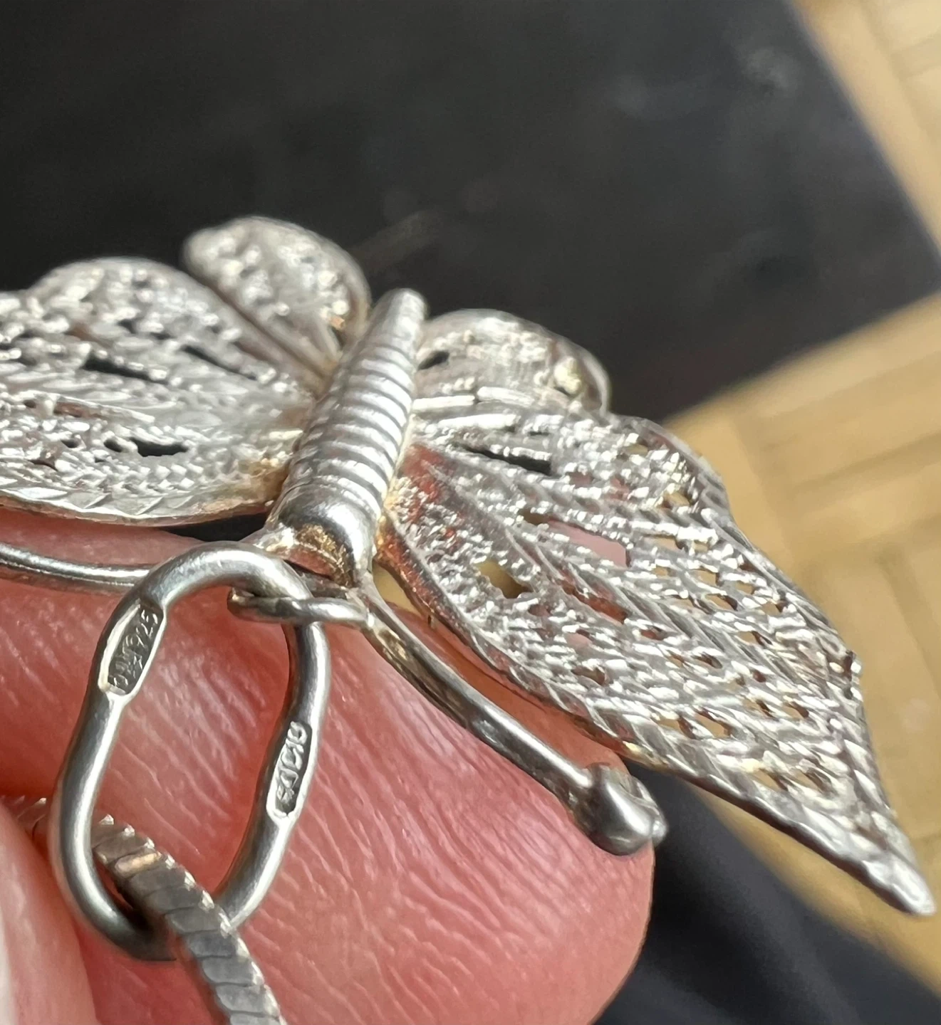 Beautiful sterling silver butterfly necklace in excellent condition. Both the chain and pendant are stamped 925, and the chain is marked 925 Italy, confirming genuine sterling silver.