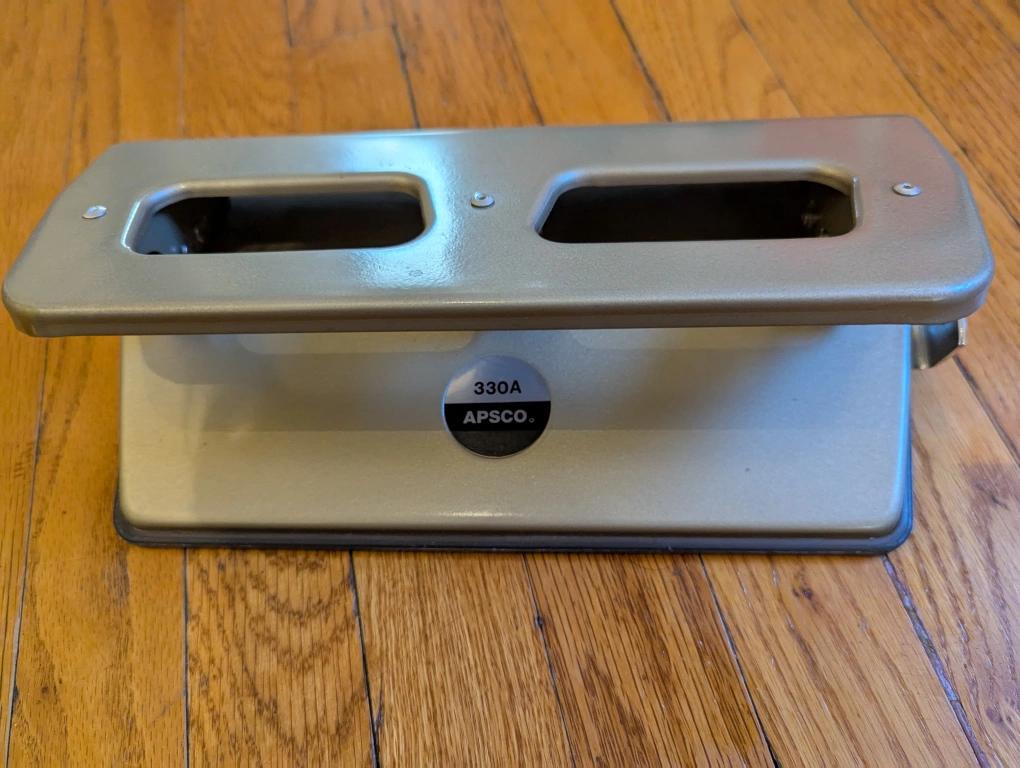 Selling an APSCO 330A hole punch. It's in good working condition and ready to help you with your paper-punching needs.