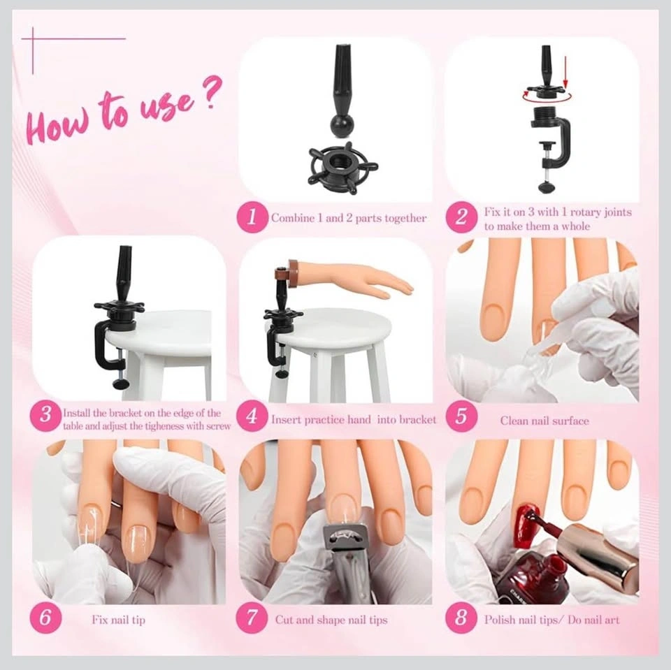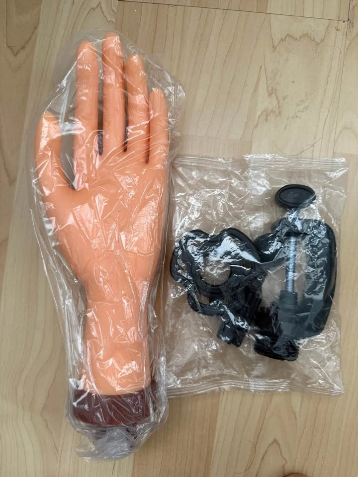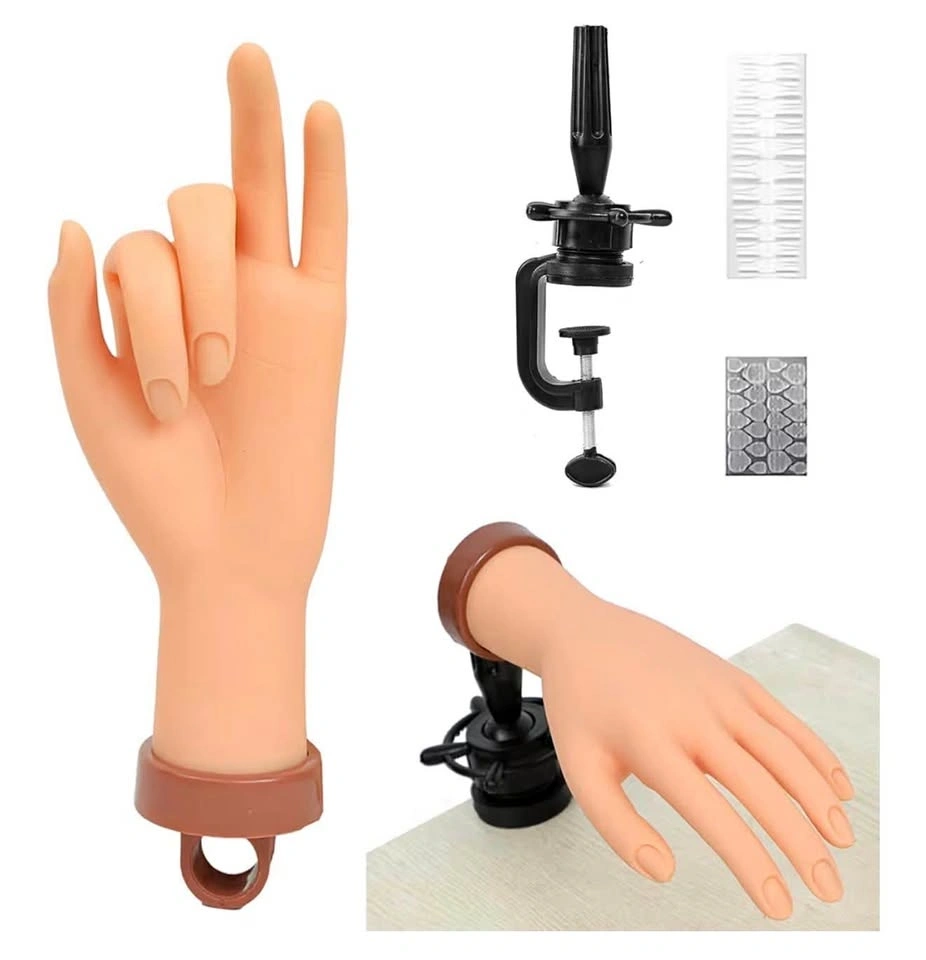 Perfect for jewelry, nail art, rings, watches, or glove display! Realistic skin-tone plastic hand (left hand). Sturdy black adjustable clamp with screw mechanism β easily mounts on tables, desks, or counters.
