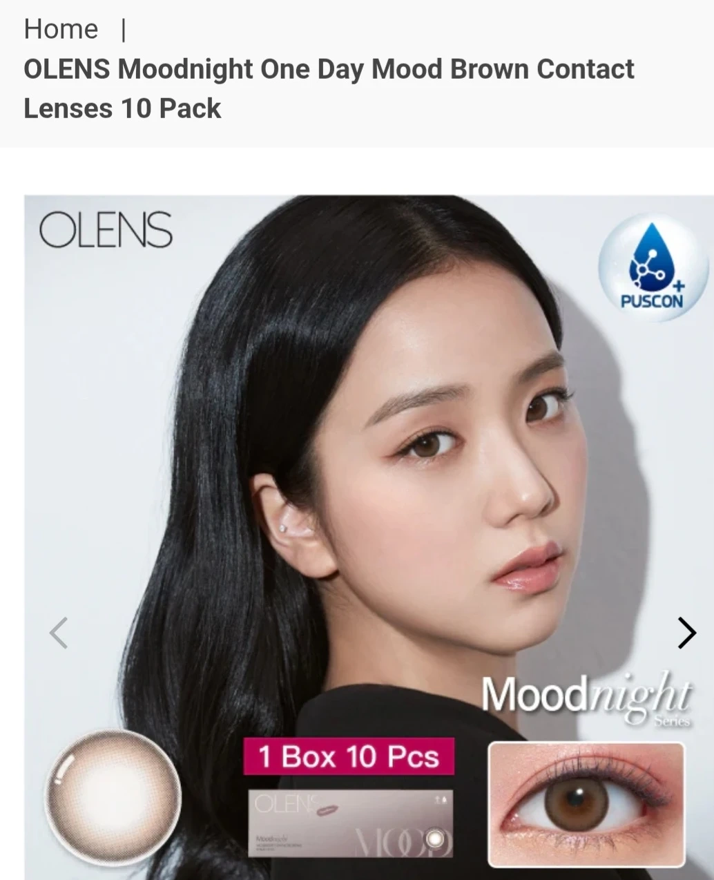 OLENS Moodnight One Day contact lenses in Mood Brown. These are hydrophilic daily disposable lenses. 10-pack colored contact lenses for $20. Only 2 used, 8 remaining. Not sold in Canada, ordered from the U.S. Expiry date is 2030-07-15.