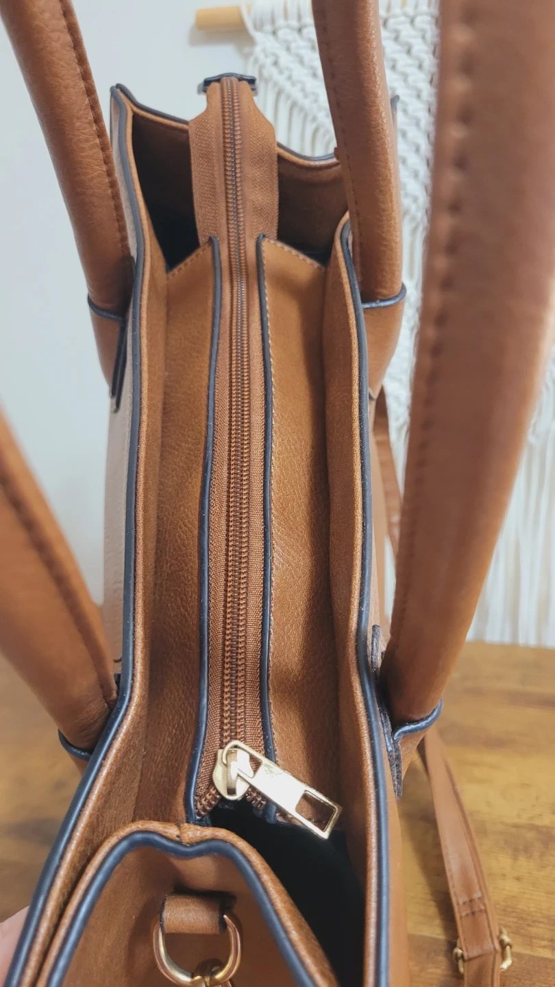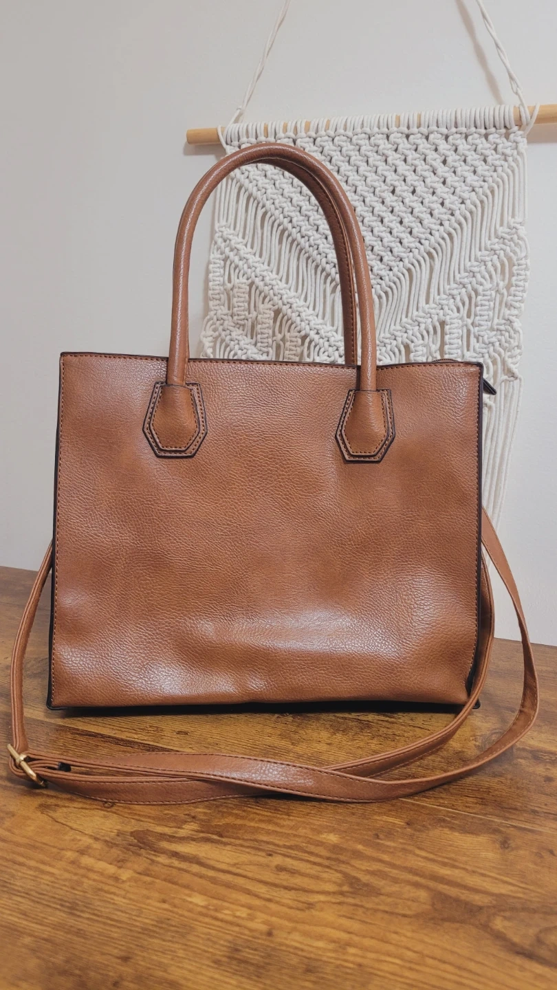 Brown Faux Leather Tote Bag with Shoulder Strap