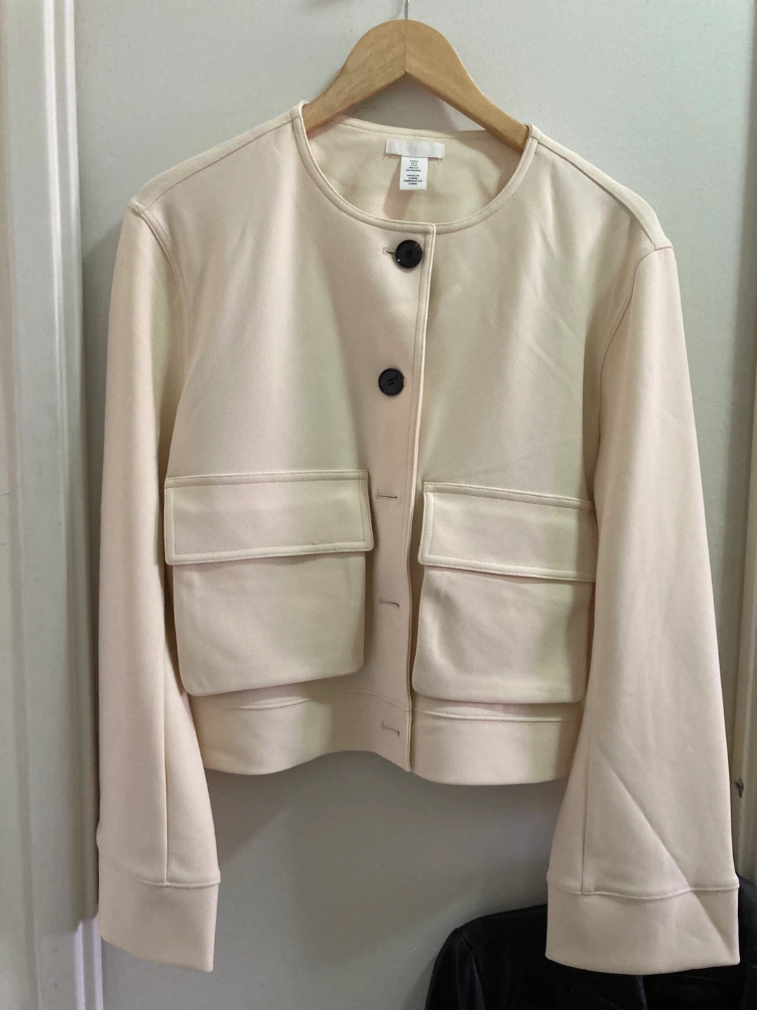 1 / 41 / 4Buy & SellCream H&M Spring JacketCream H&M Spring Jacket$10Crop jacket with flare arms. Size S, but fits more MConditionLike newBrandH&MWHERE TO MEETSpadina StationView MapSELLERMarisaBloor Annex17817 reviews0 chats