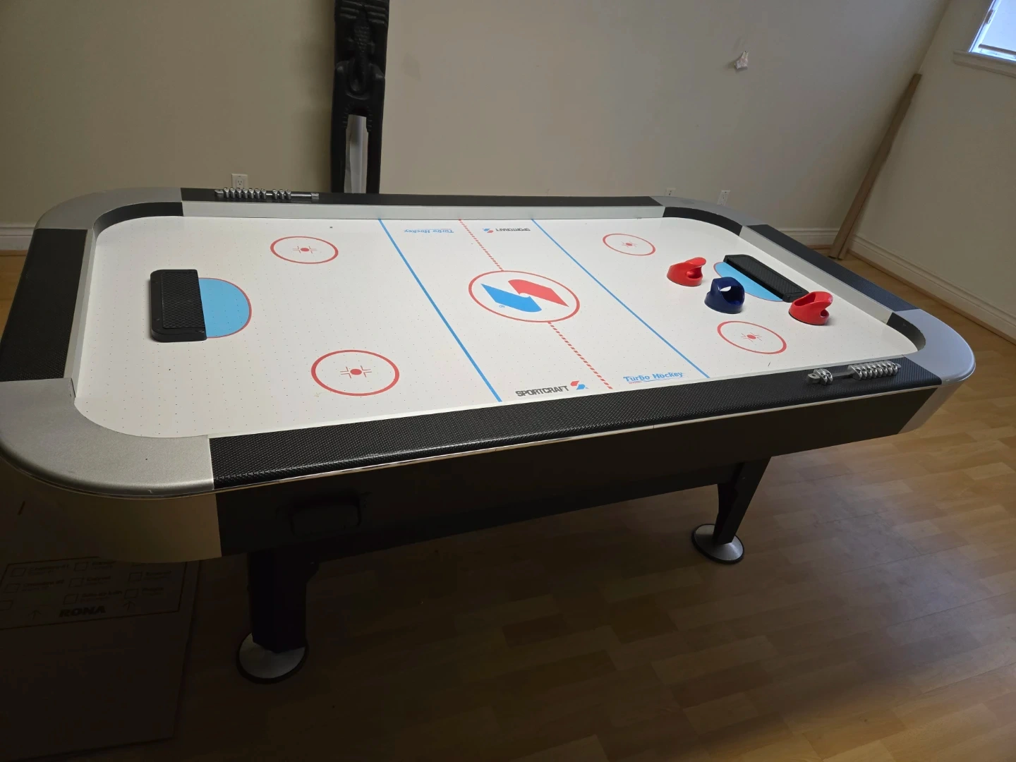 This Sportscraft Turbo Hockey air hockey table is ready for some fun! It includes pucks and mallets for gameplay. This table's a great way to entertain guests at parties or for family game nights.