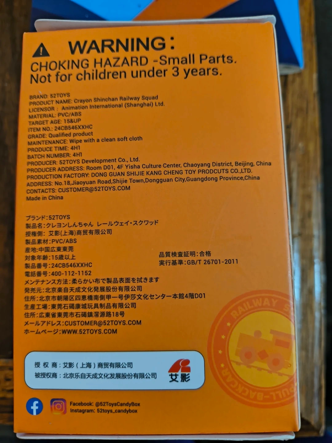 Selling a 52TOYS Crayon Shinchan Railway Squad figure! The box indicates it's suitable for ages 15 and up, and the material is PVC/ABS. It's part of the Animation International (Shanghai) Ltd series.
