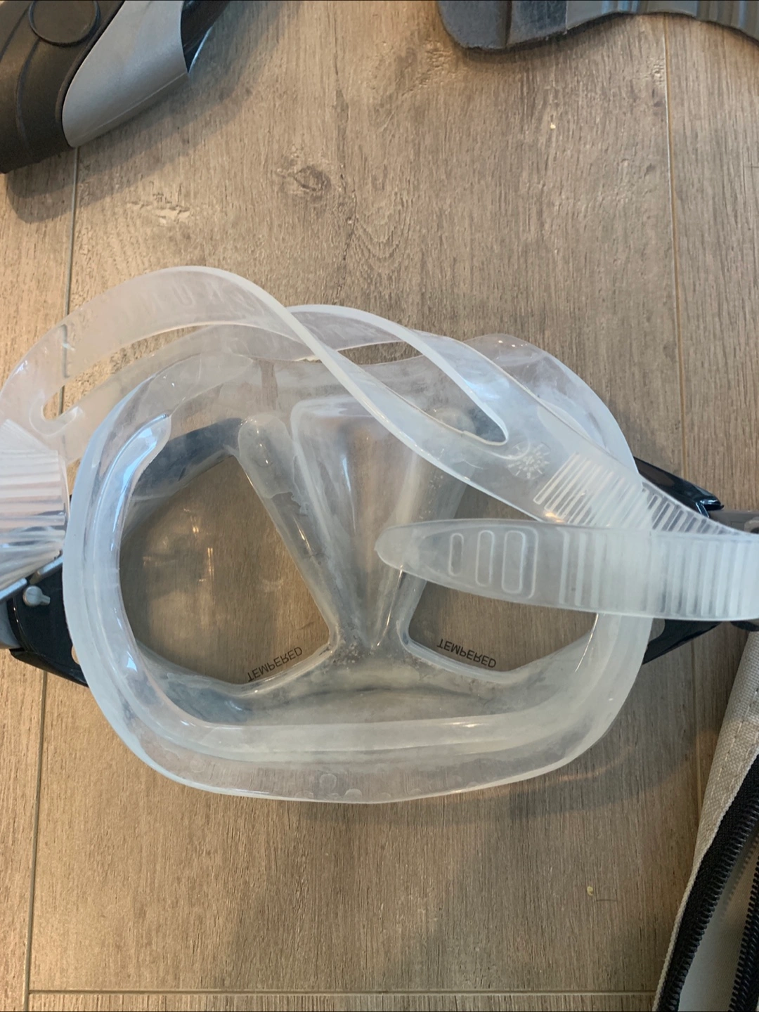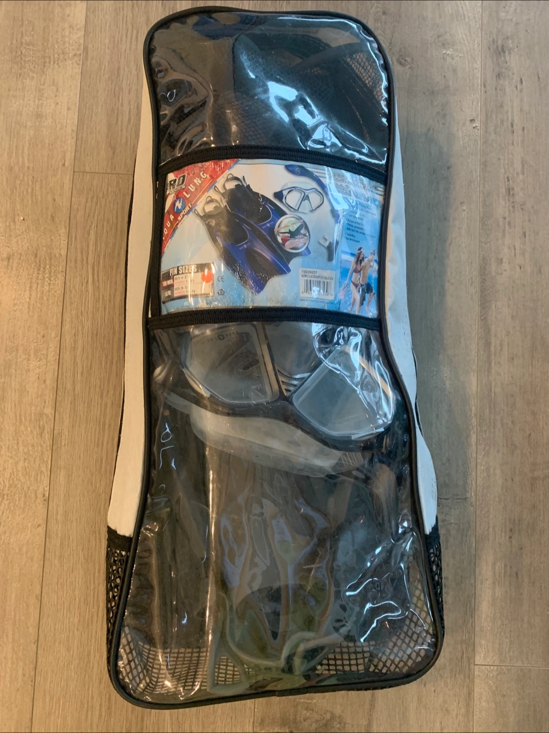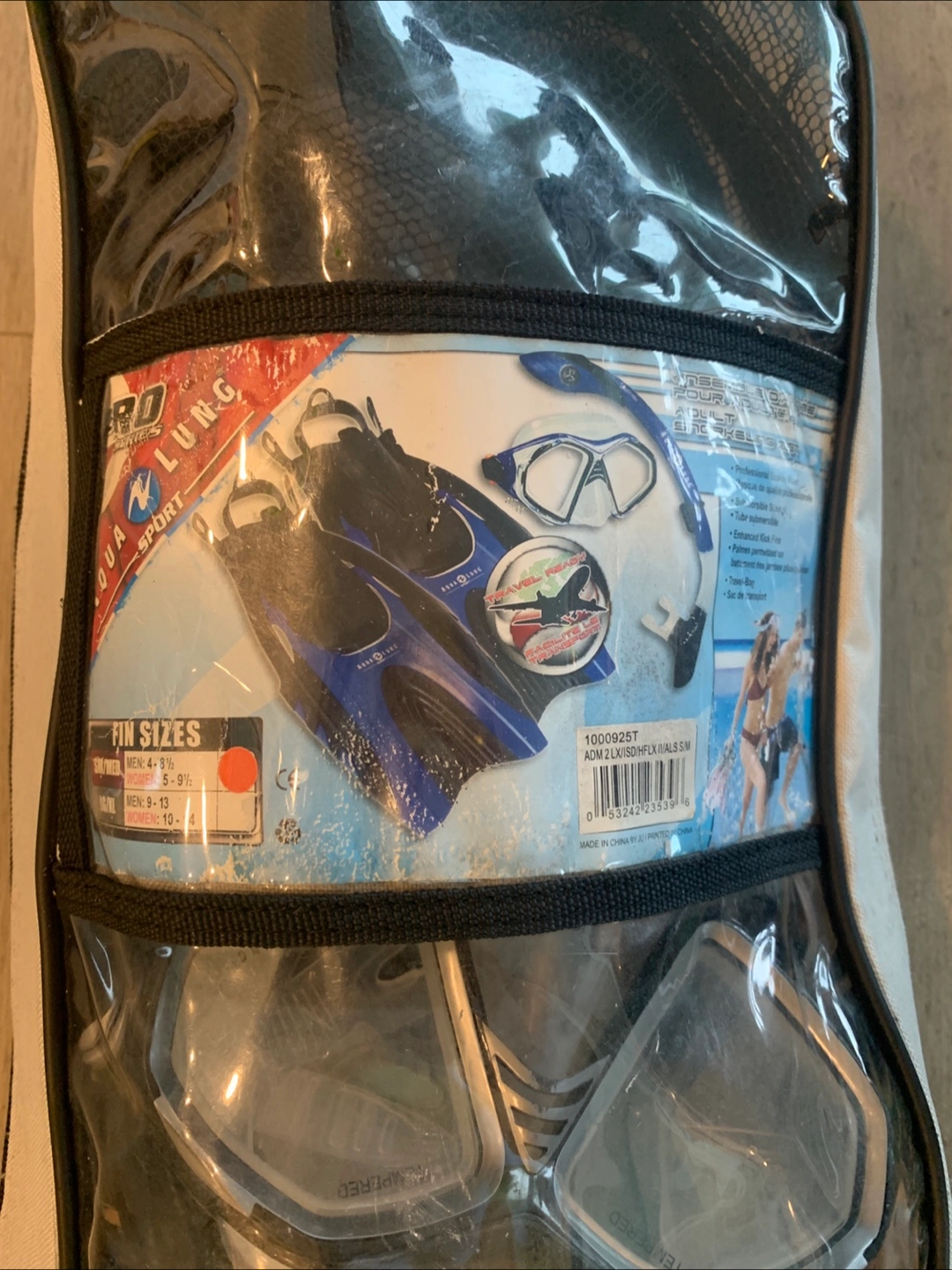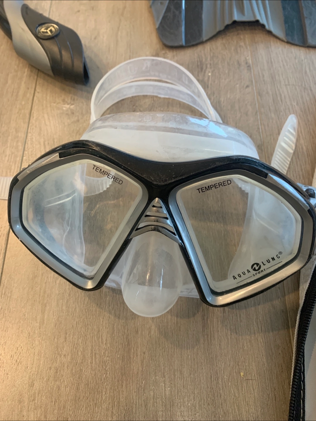 Get ready for your next underwater adventure with this Aqua Lung snorkeling set! Includes a mask tempered, fins, and a snorkel. Everything you need to explore the depths! Has been in storage for about a year and not needed any longer. size s/ m see pictures