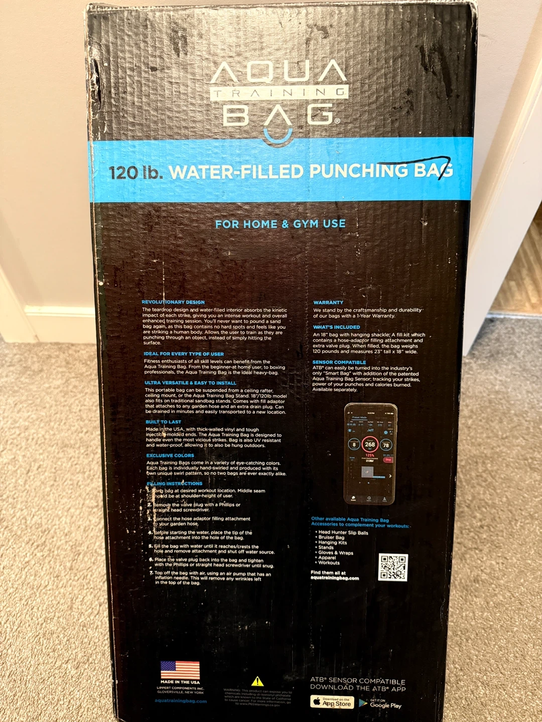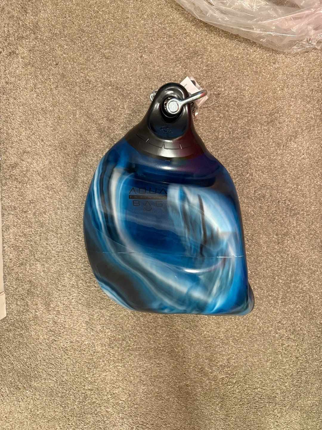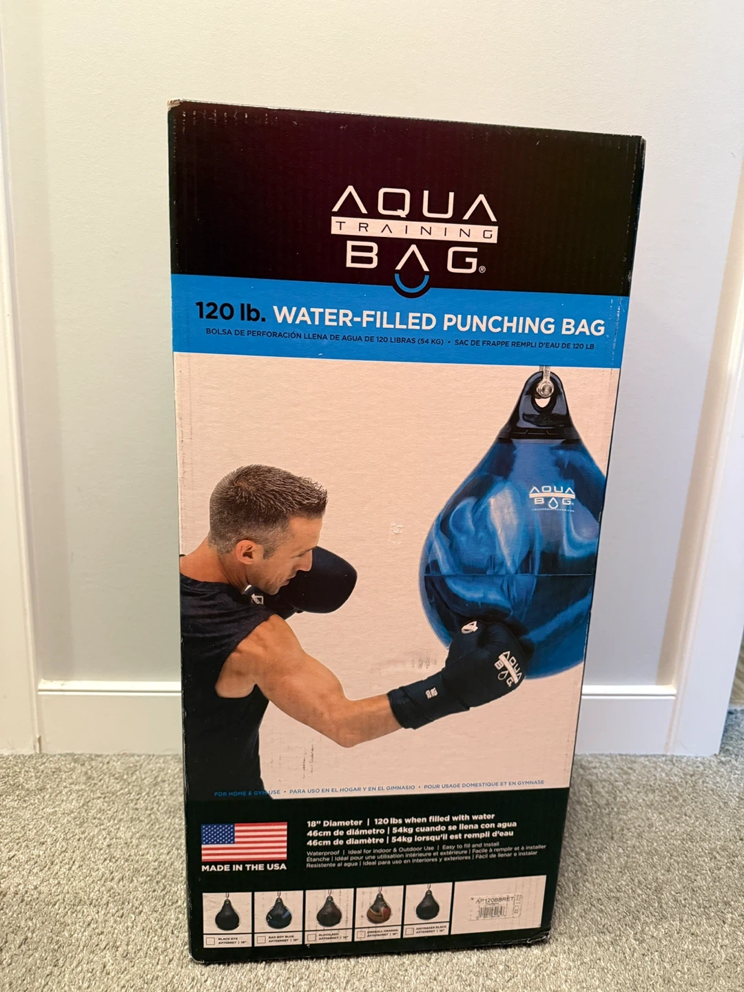 60Selling my Aqua training bag 120 lb water filled punching bag - tear drop shaped Never got around to setting up or using the punching bag and it’s literally brand new. only taken out of the box to take pictures of it Retails for 200