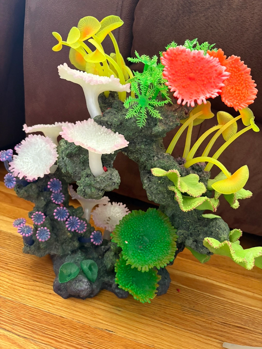 Add a splash of colour to your aquarium with this artificial coral plant decoration! It's in great condition and ready to bring some underwater charm to your fish tank