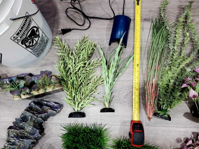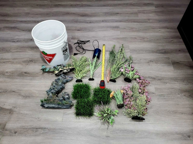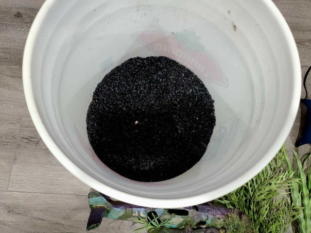 Selling used aquarium decorations, black gravel, and Tetra Whisper 10 air pump. Gravel was enough to fill a 50 gallon aquarium about 1 inch. Want to sell everything together.