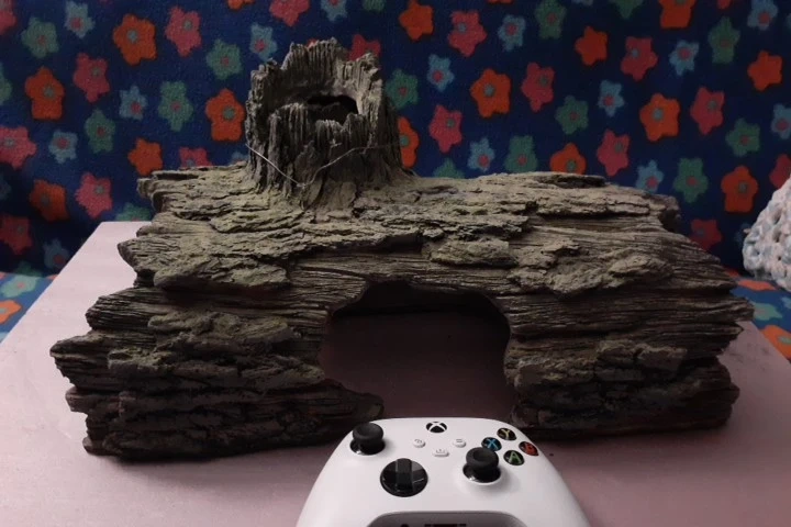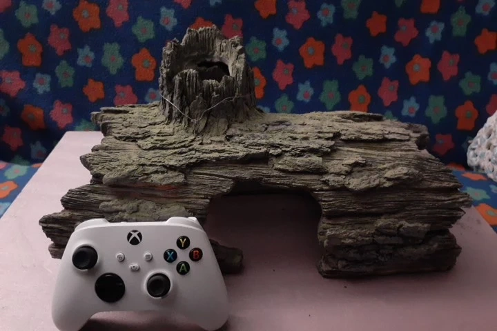 20Selling a lovely aquarium ornament that looks like a log hideout. It adds a natural touch to your fish tank and gives your aquatic friends a cozy place to hide and explore. Xbox controller for size and not included.