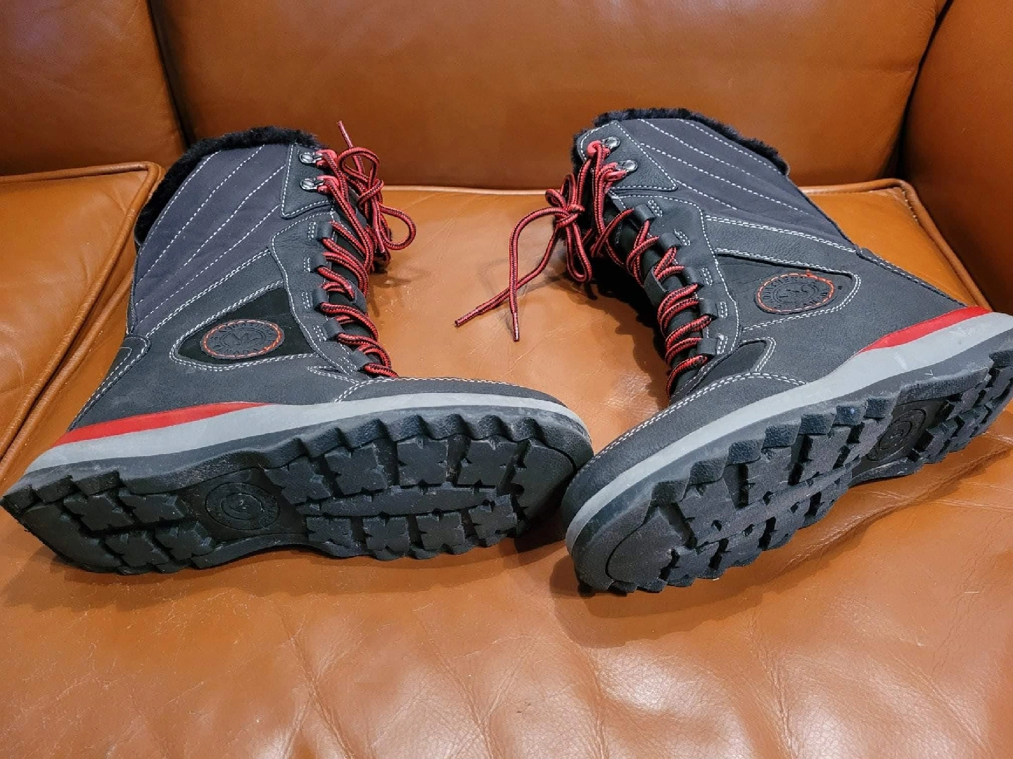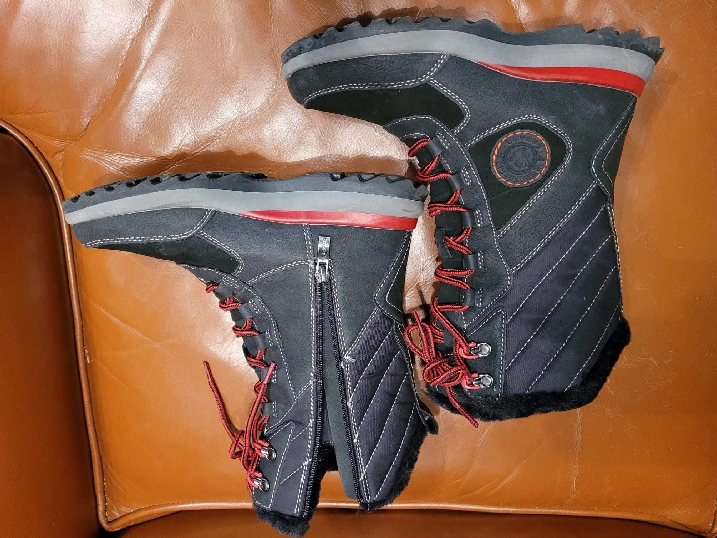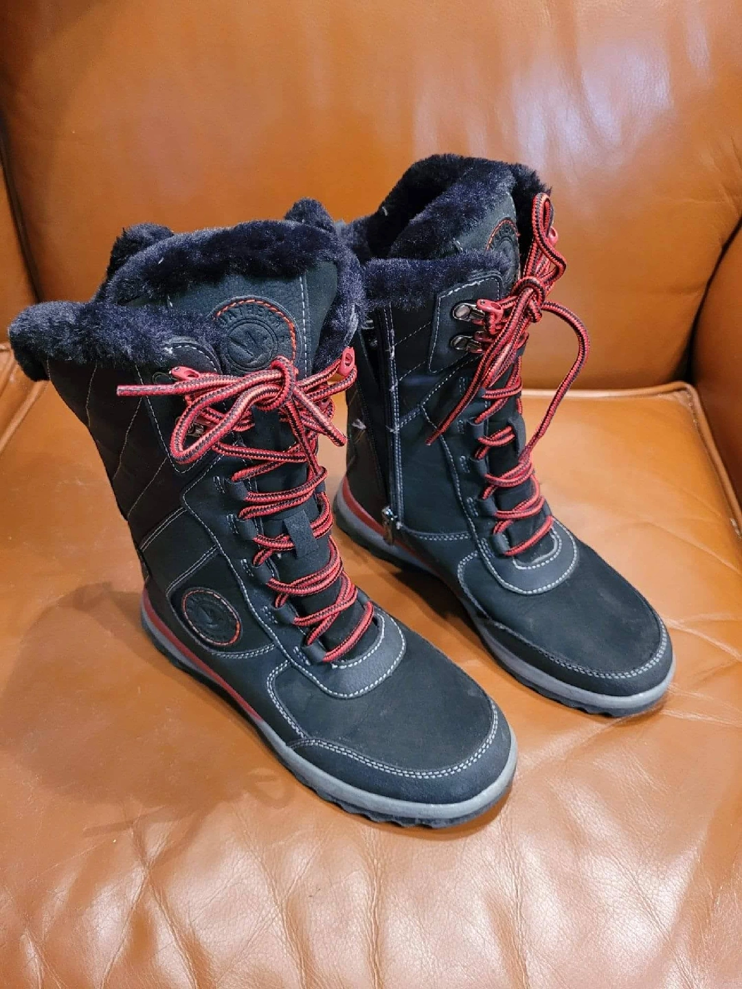 85Cozy winter boots ready for the snow! These are size 6M and feature a synthetic upper with textile lining and a TPR outsole. Perfect for keeping your feet warm and dry this winter season