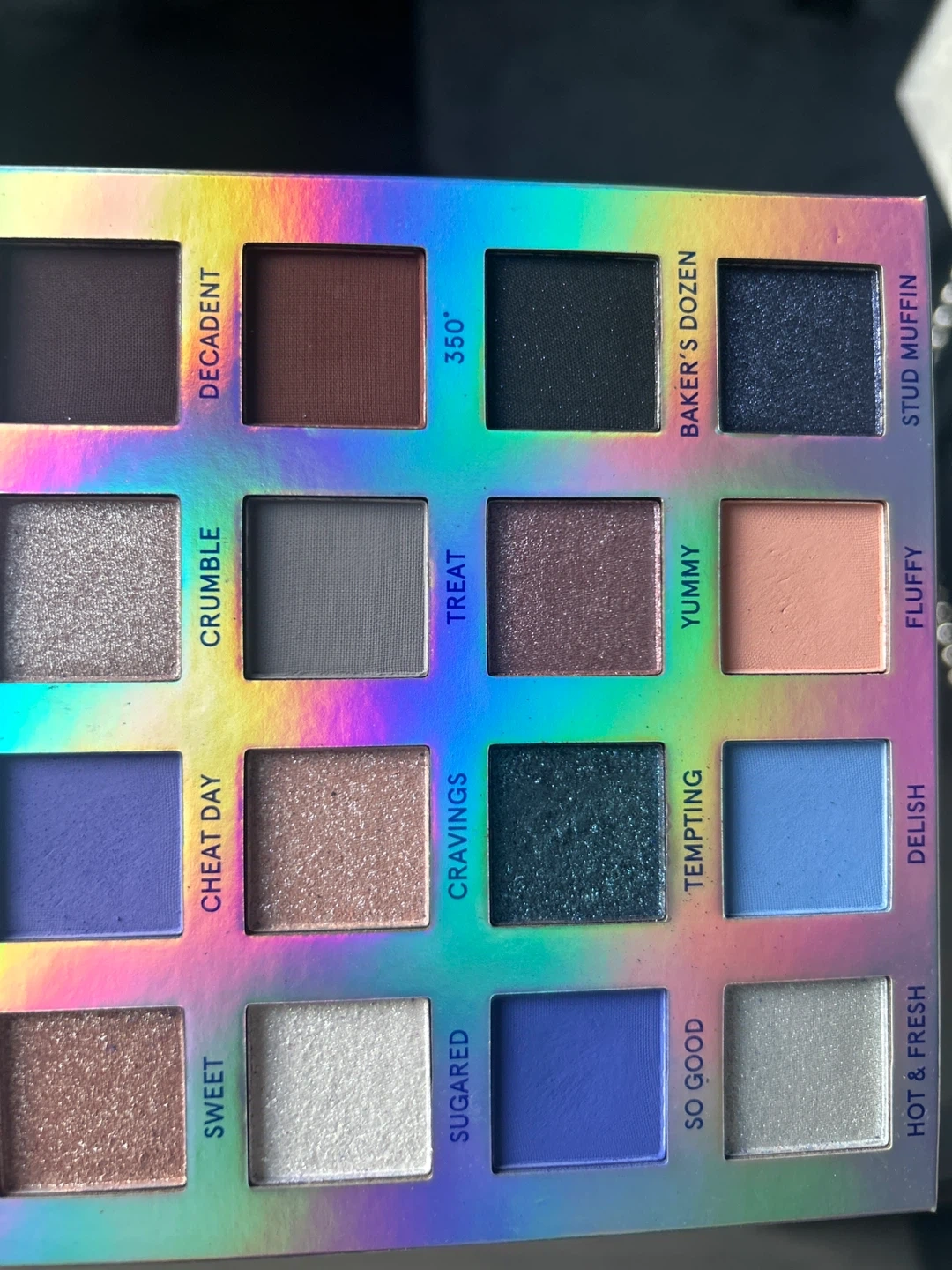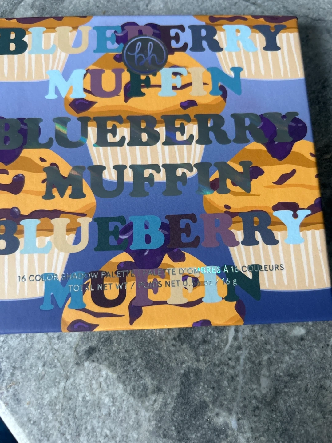 This BH Cosmetics eyeshadow palette features 16 shades inspired by blueberry muffins. It includes a mix of matte and shimmer finishes. Colours range from deep blues to neutrals and warm browns.