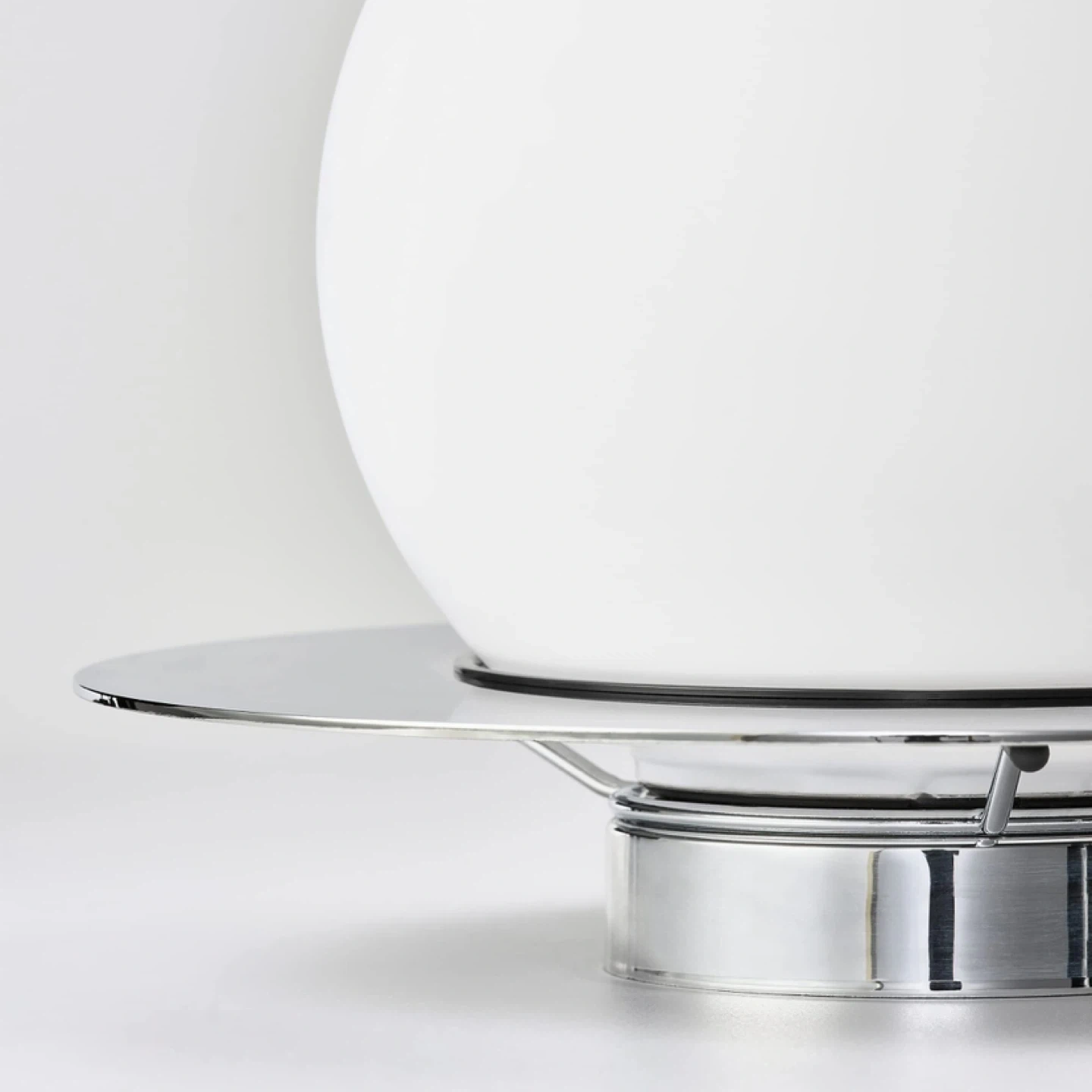 IKEA Simrishamn table lamp with a 6” white globe shade. It has a chrome base and a white frosted shade giving off soft light. It’s sold as a table lamp OR wall sconce (see image of back for mounting). Good vintage condition.