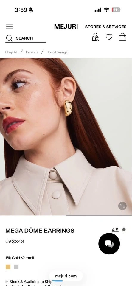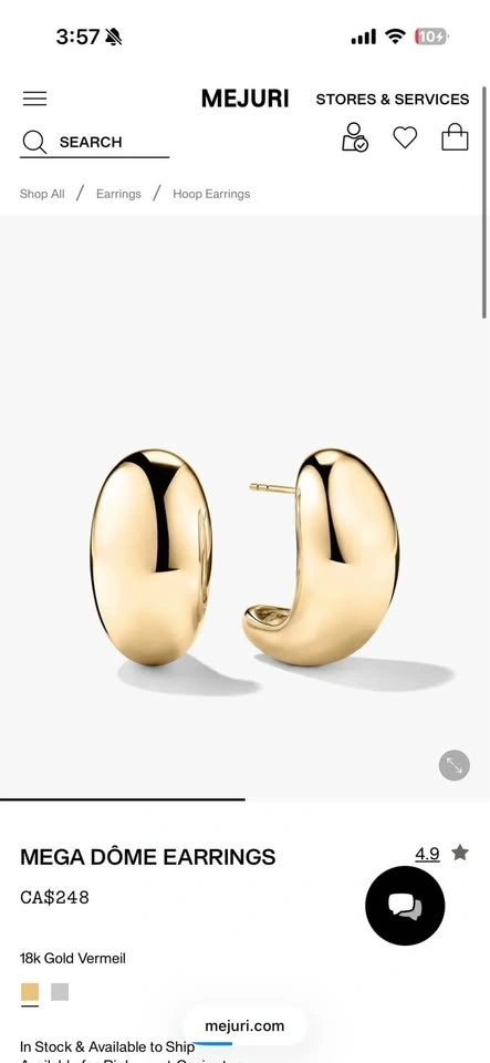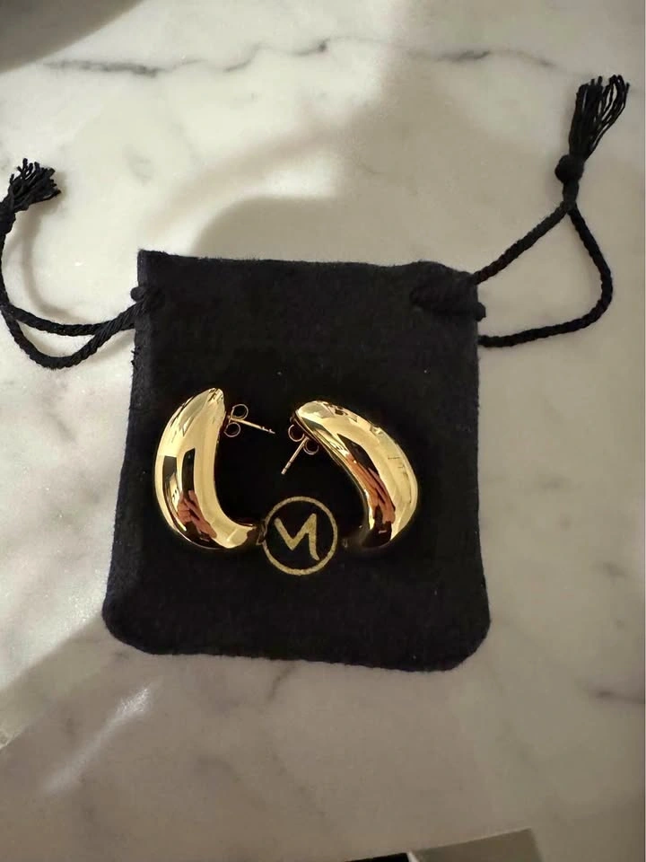 Gorgeous Mejuri Mega Dome 18k Gold Vermeil Hoop Earrings. These are super shiny and come with the original black pouch. Perfect for adding a touch of glam to any outfit. In excellent condition, only worn twice.