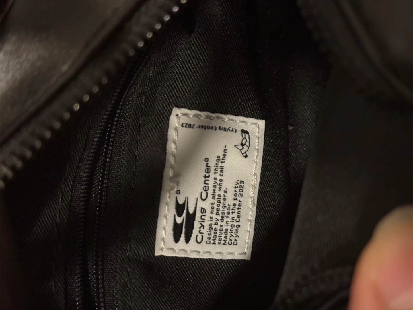 This is a Crying Center black mini bag. It's made of faux leather with a zip closure. Includes a removable shoulder strap.