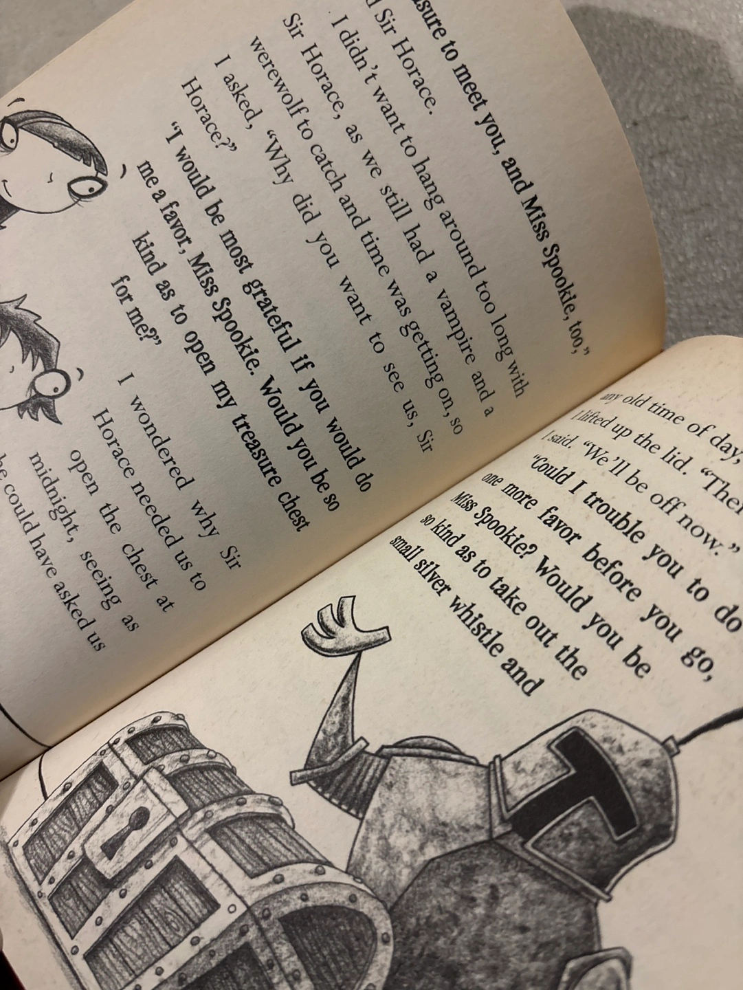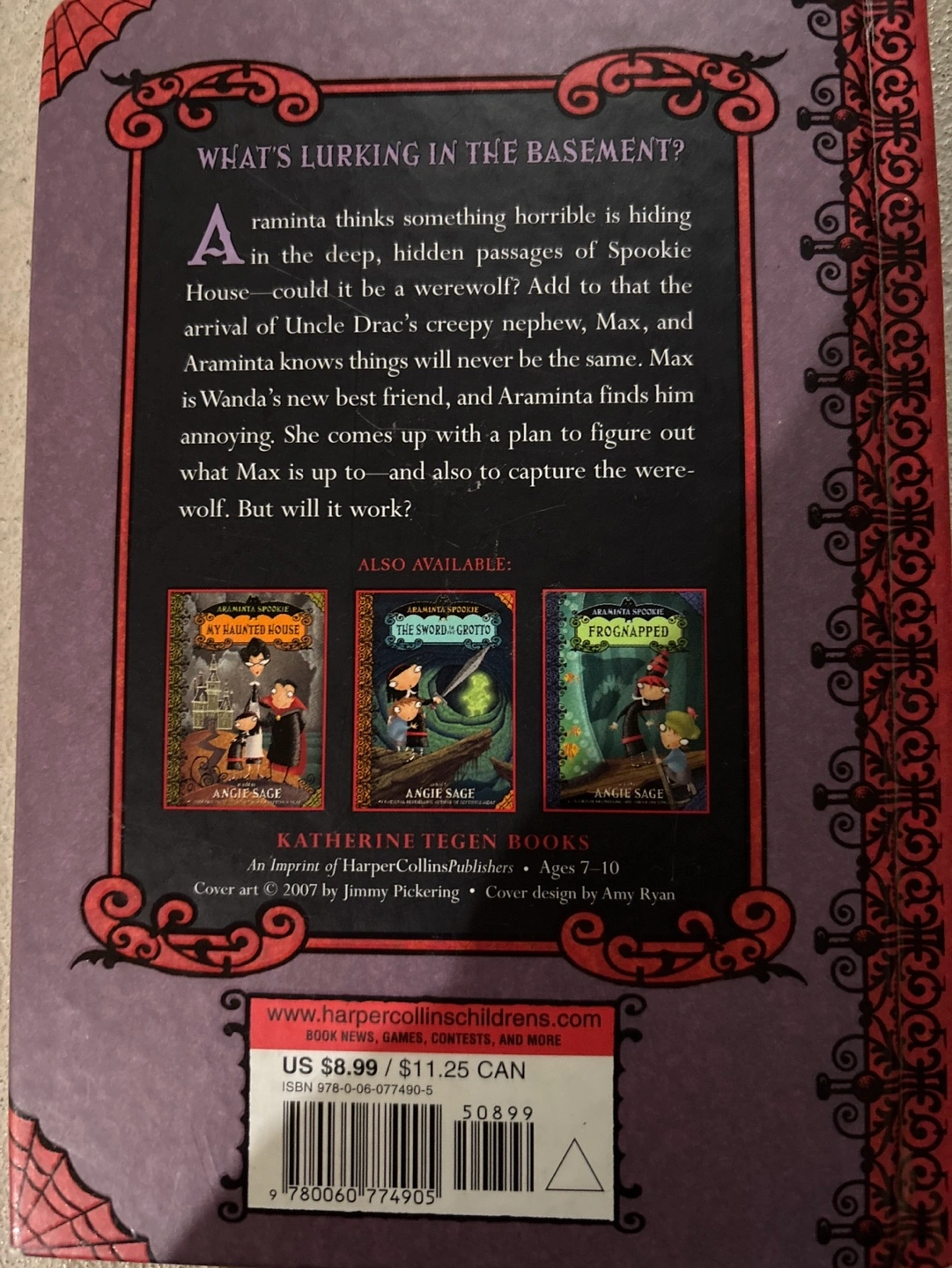 Children's book. Part of the Araminta Spookie series. Written by Angie Sage. Good condition. Features illustrations.