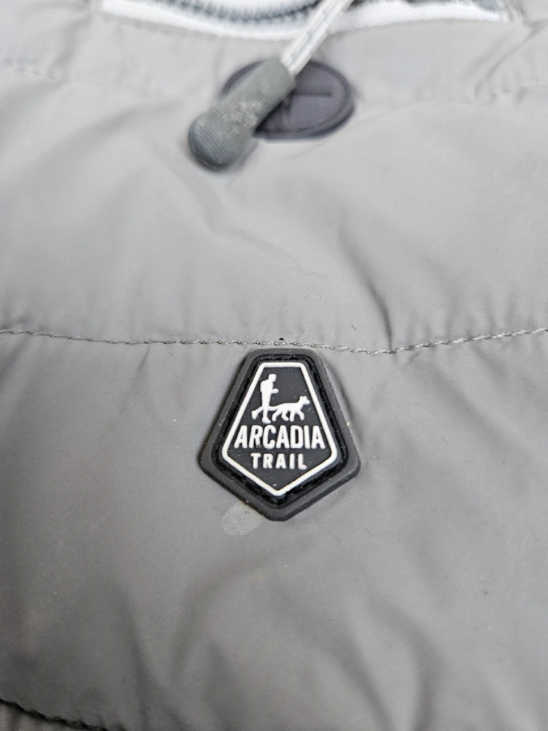 Keep your furry friend warm with this Arcadia Trail dog jacket! It's grey and size small. Perfect for those chilly Canadian walks