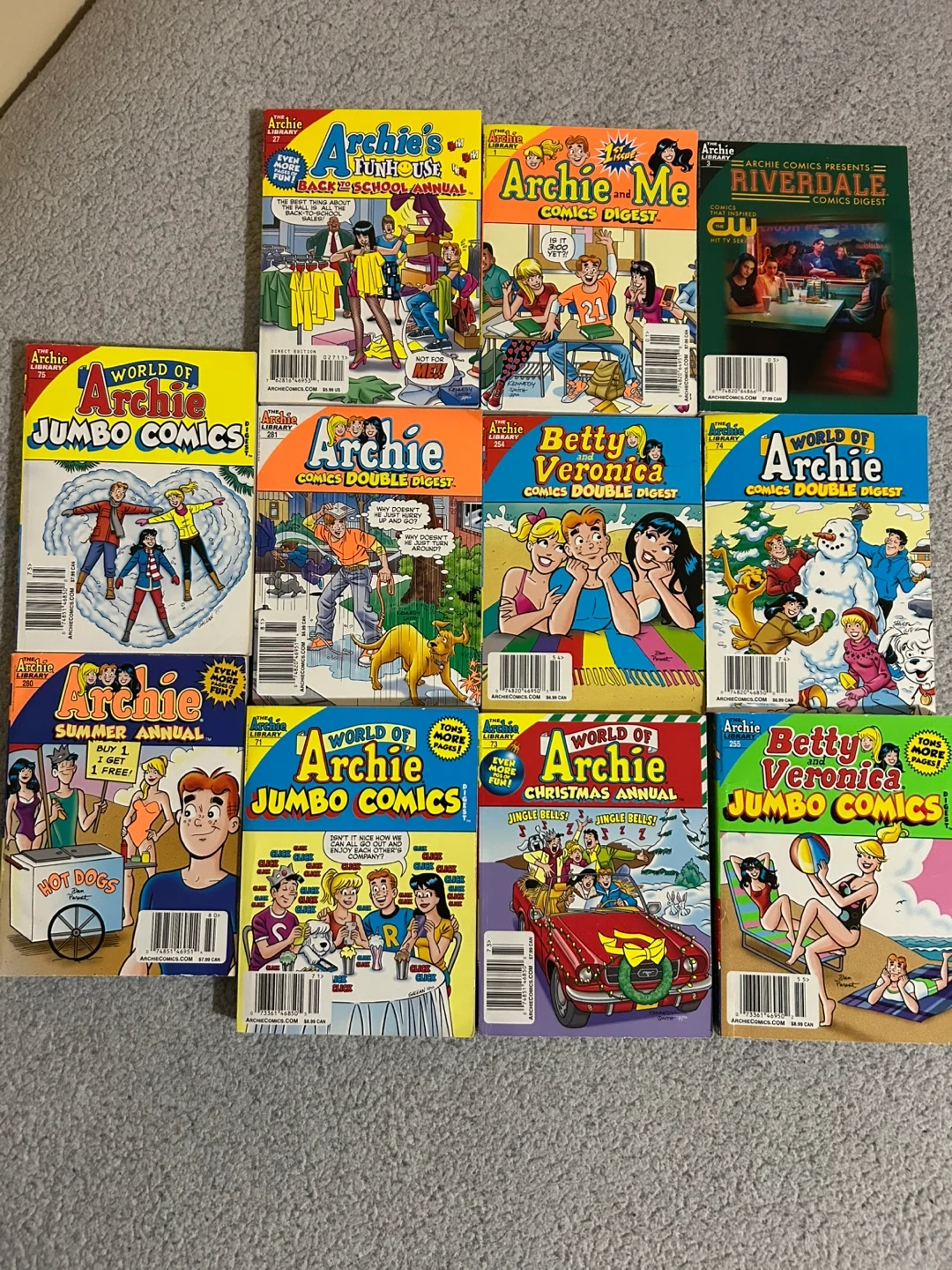 175Selling a lot collection of Archie comics! Includes various titles like Archie's Funhouse, Archie’s Double Digest, Archie and Me, Riverdale, World of Archie Jumbo Comics, and Betty and Veronica Comics Double Digest, and more! A fun mix of all the classic Archie stories!