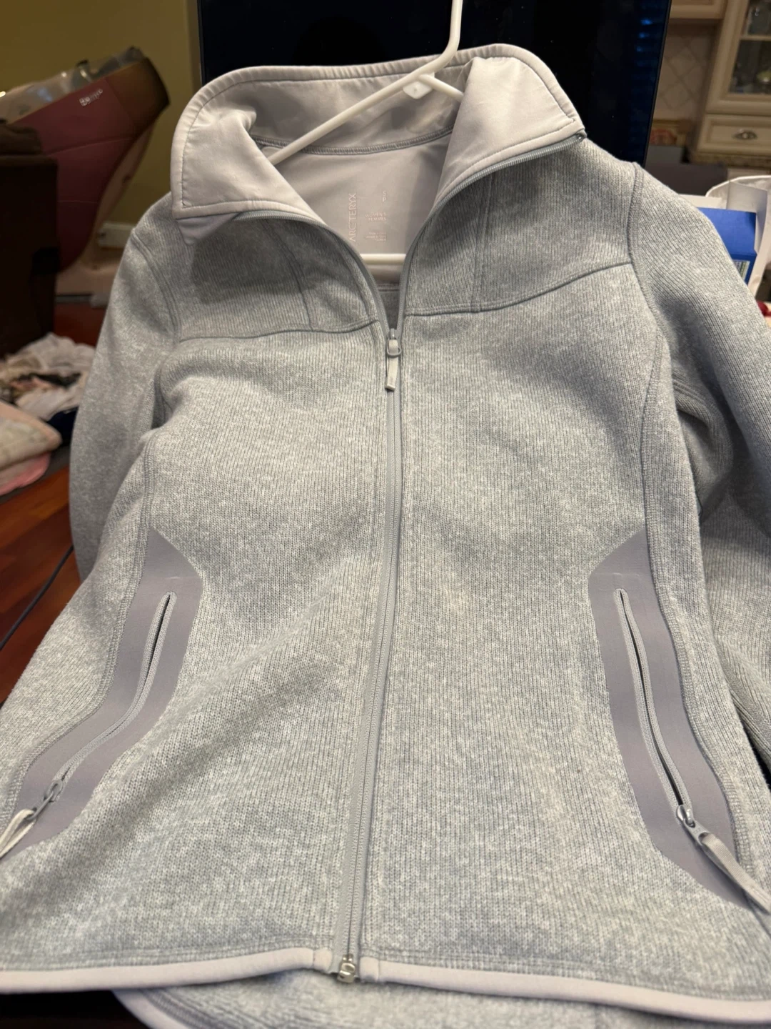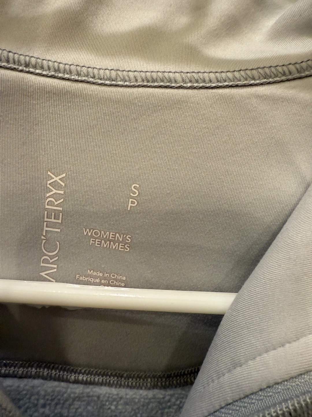 Selling a gently used Arc'teryx women's fleece jacket in size small. It's in great shape and perfect for layering or wearing on its own during cooler days. The light grey colour is super versatile too!