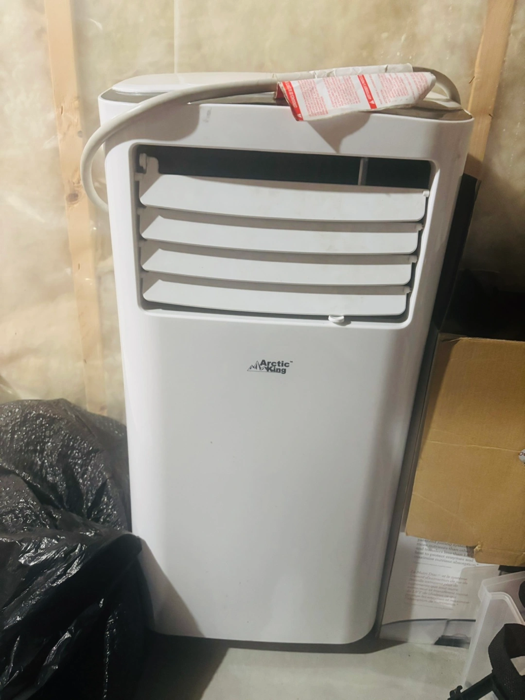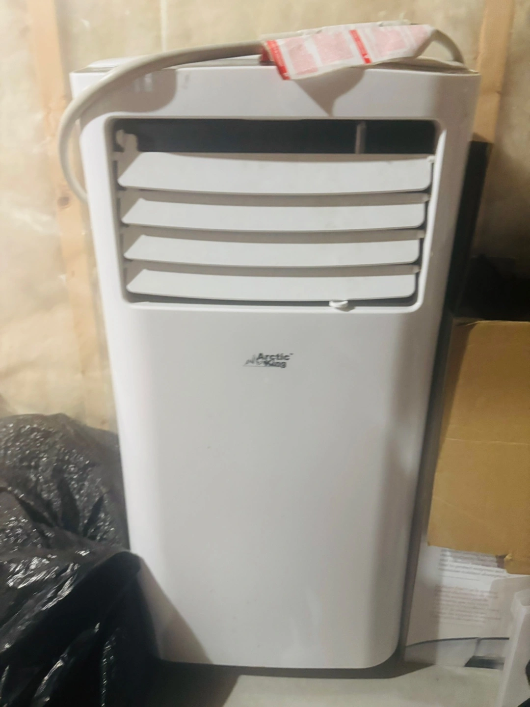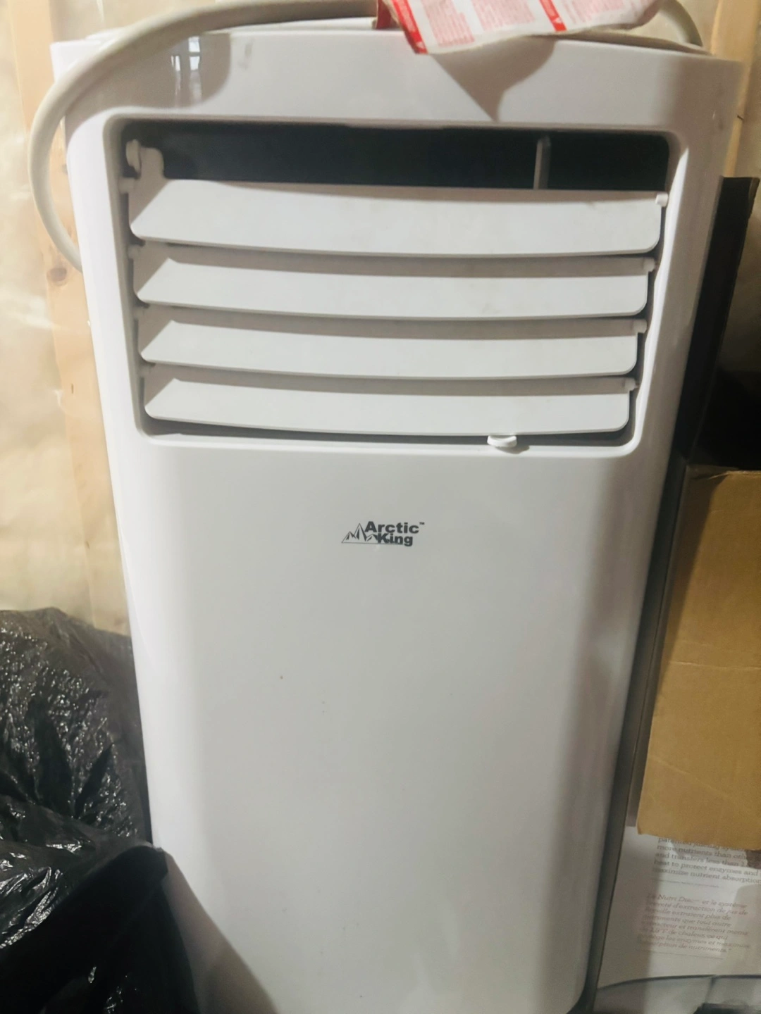28Portable air conditioner. White plastic casing. Includes exhaust hose. Used. Excellent condition