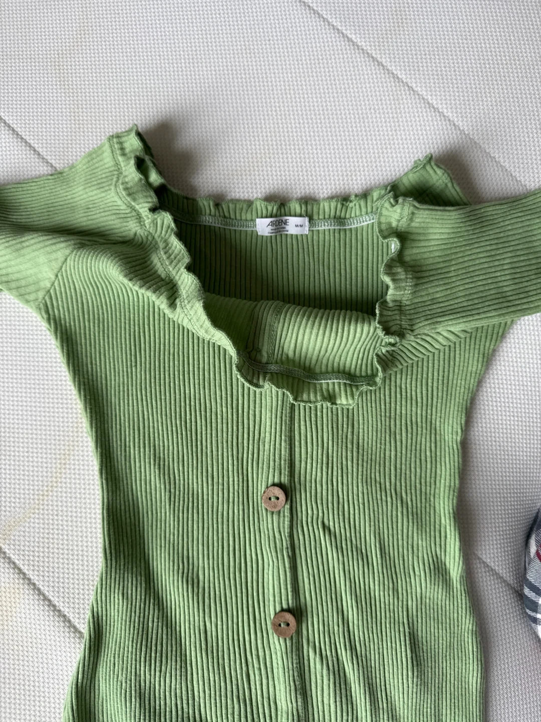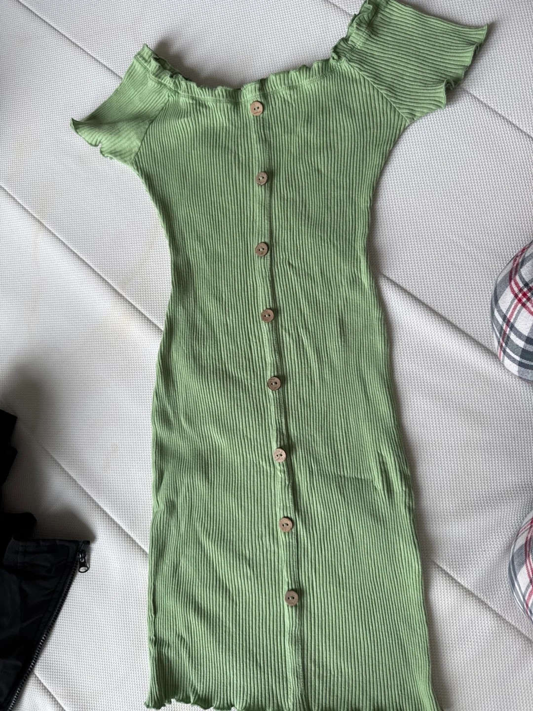 105Selling a cute Aroine green ribbed dress. It features button detailing and a flattering fit. Size is M.