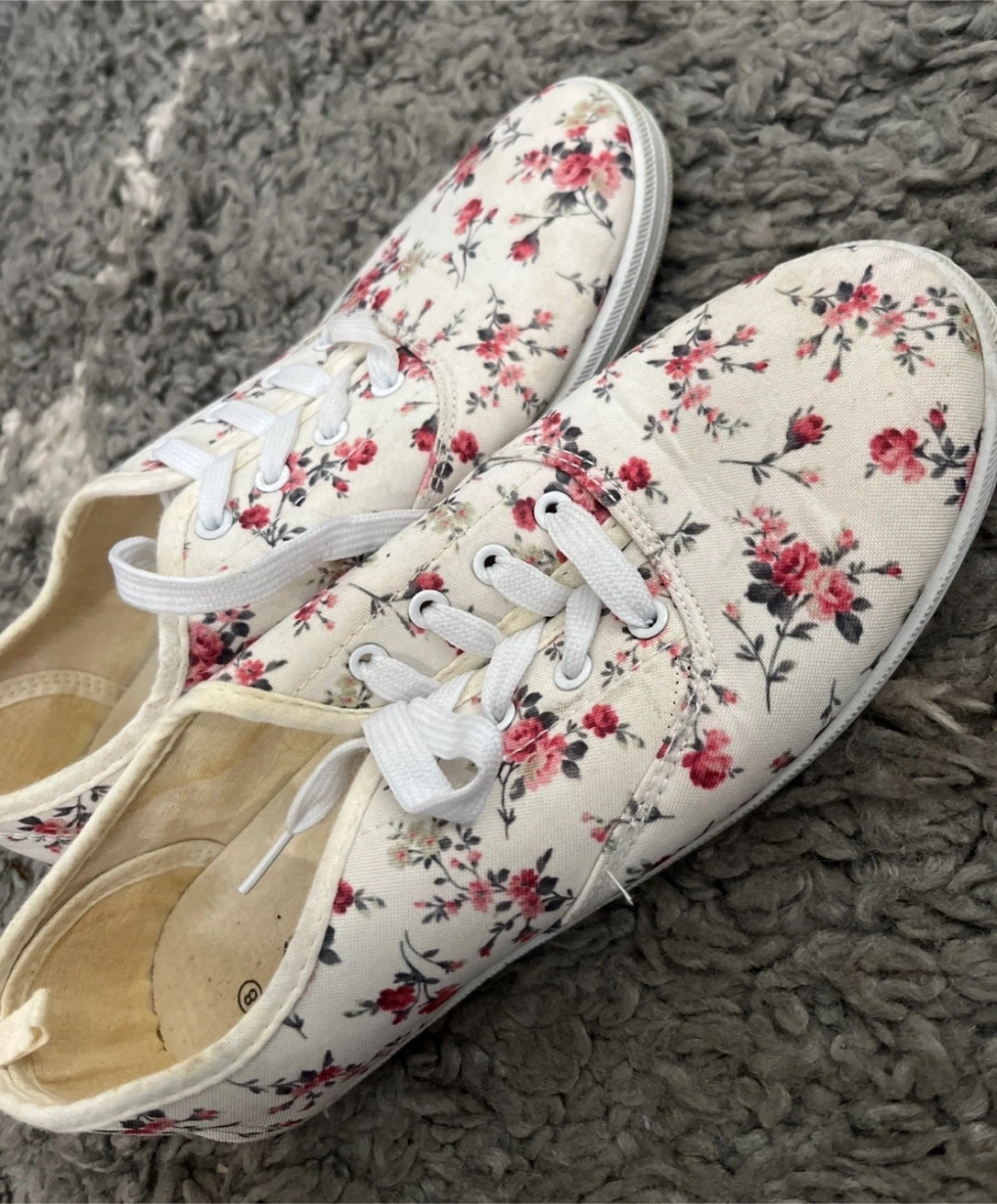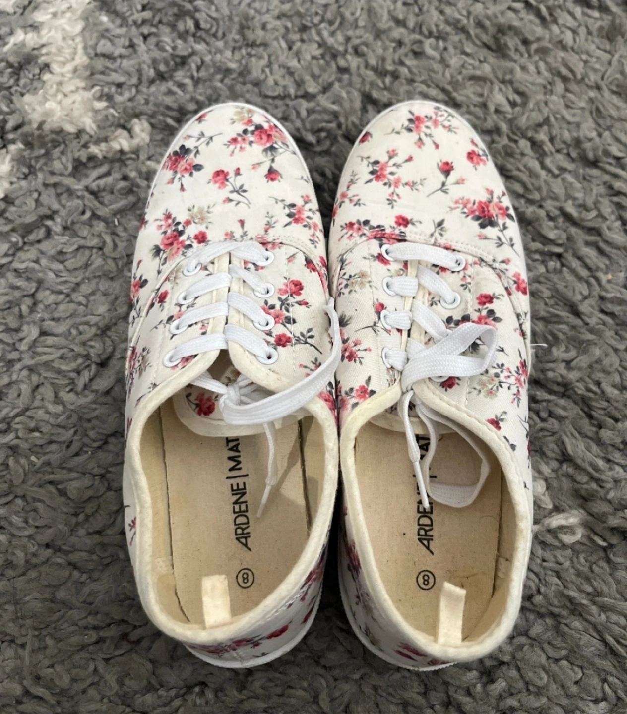 Cute brand new Ardene sneakers with a floral print! They are a size 8 and have white laces. Perfect for adding a touch of spring to your outfit.