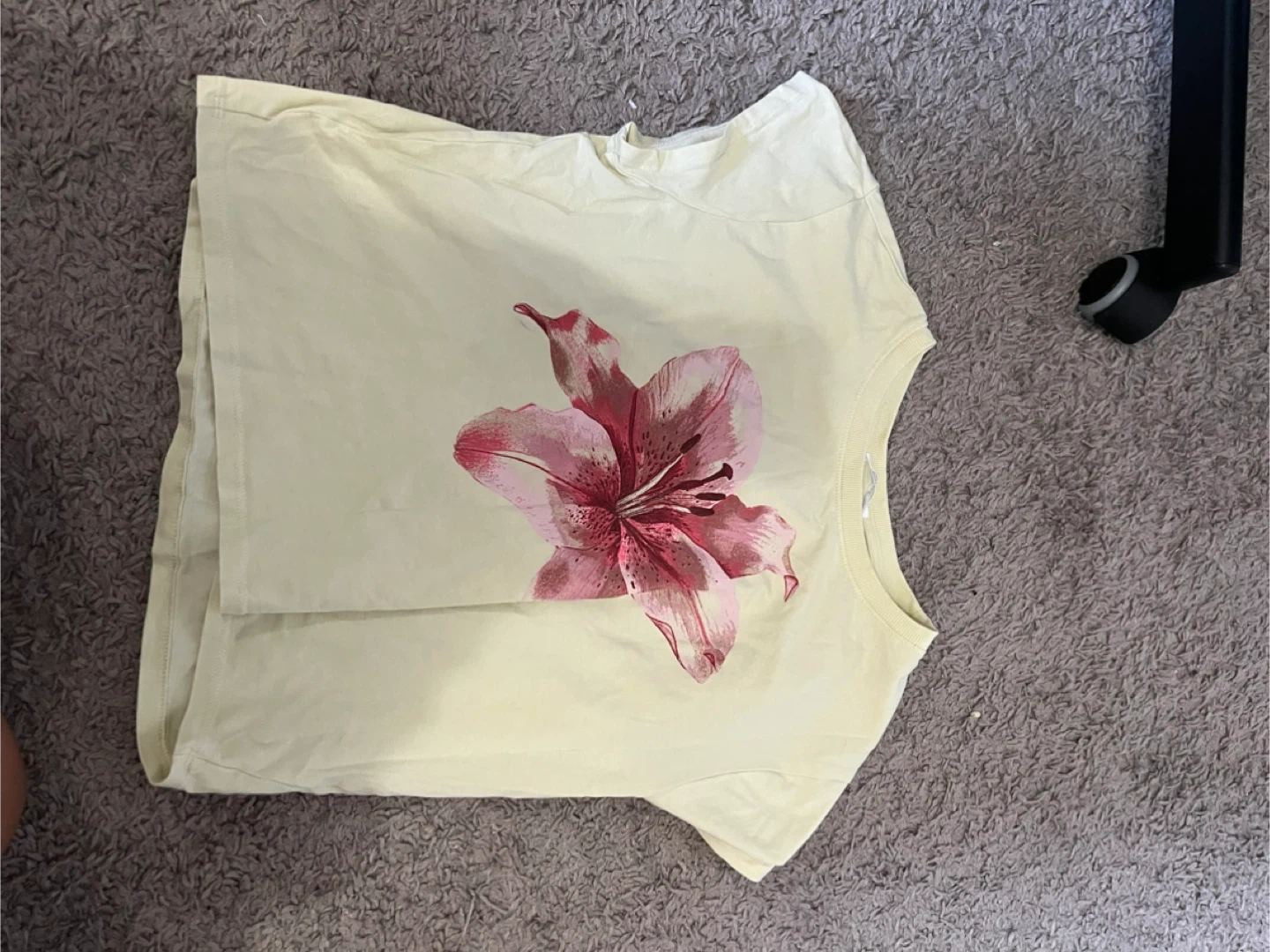 A cute Ardene t-shirt with a pink hibiscus flower design! It's a size XL and in great condition. Perfect for a casual day out or lounging at home