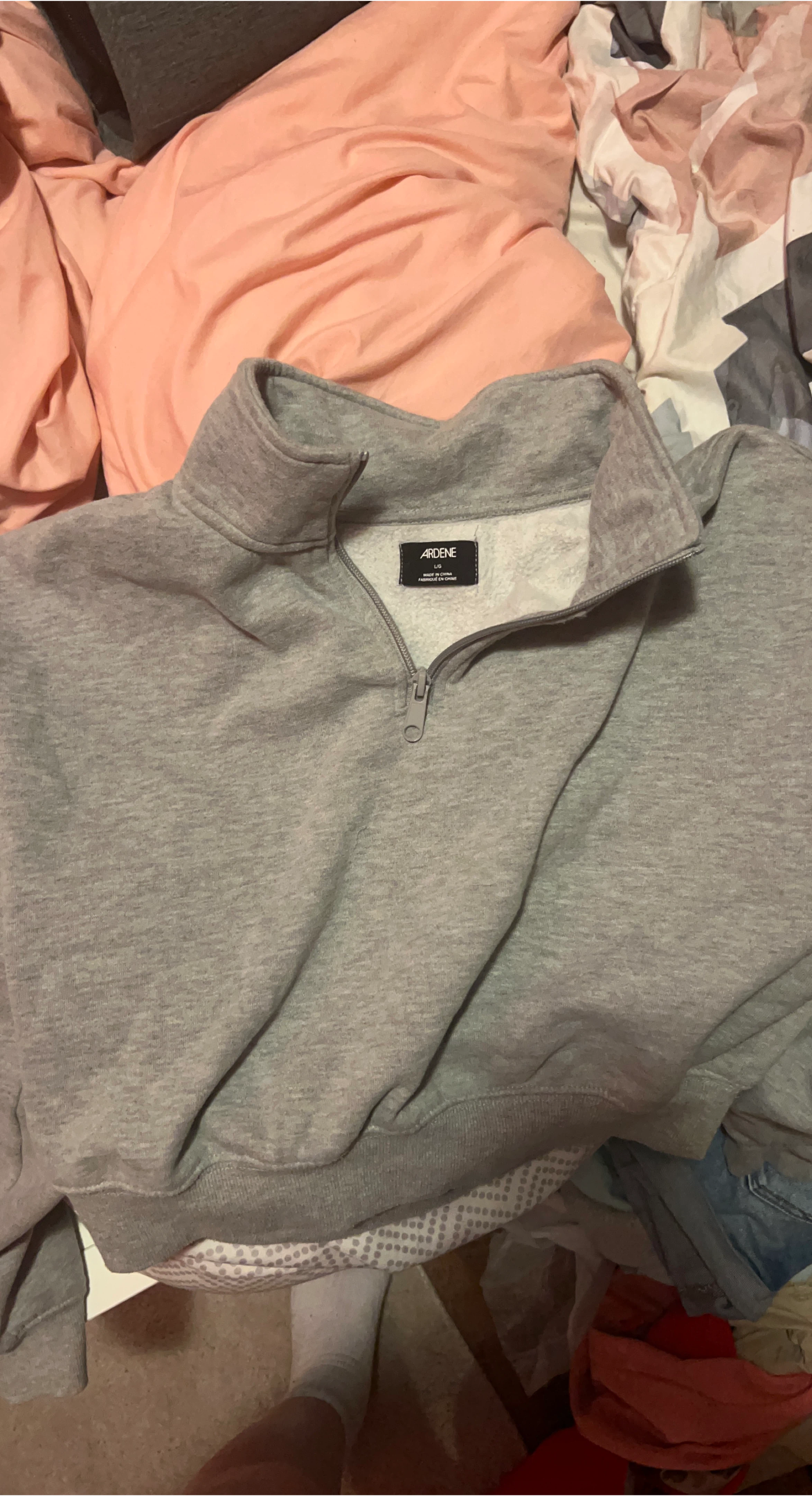 Cozy grey pullover from Ardene! It's a size large and has a 1/4 zip. Perfect for layering or just lounging around the house
