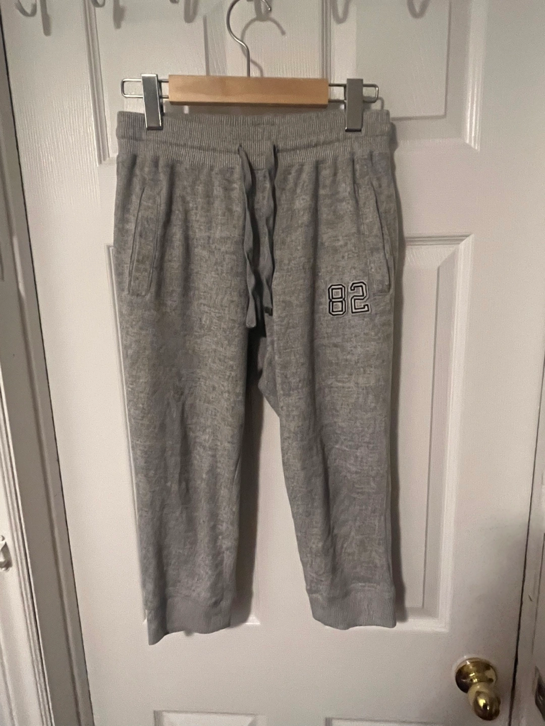 10Selling a pair of Ardene crop sweatpants in a neutral grey colour. They're a size XS and feature a drawstring waist for a comfy fit. Perfect for lounging around the house or running errands!