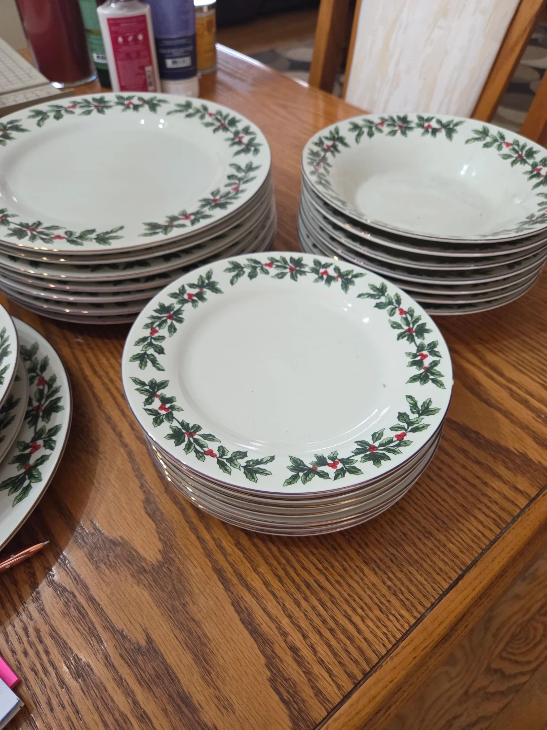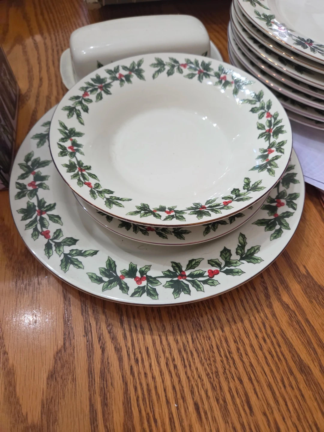 Christmas Holly Holiday Dinnerware Set - Plates & Bowls
