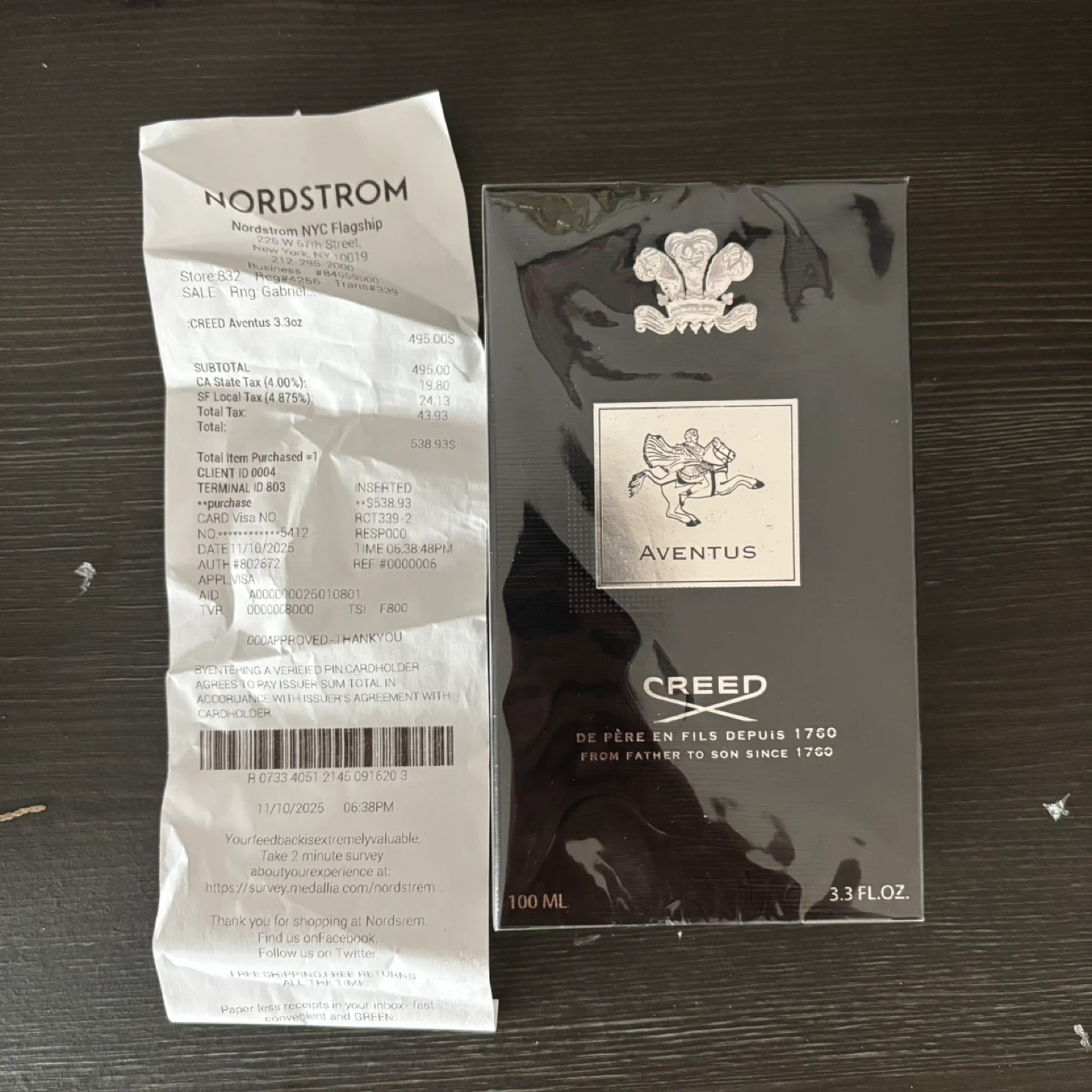 This is a new, sealed 100ml bottle of Creed Aventus Eau de Parfum. It's a blend of pre-cious and rare essences. The composition is a combination of prestigious and rare essences.