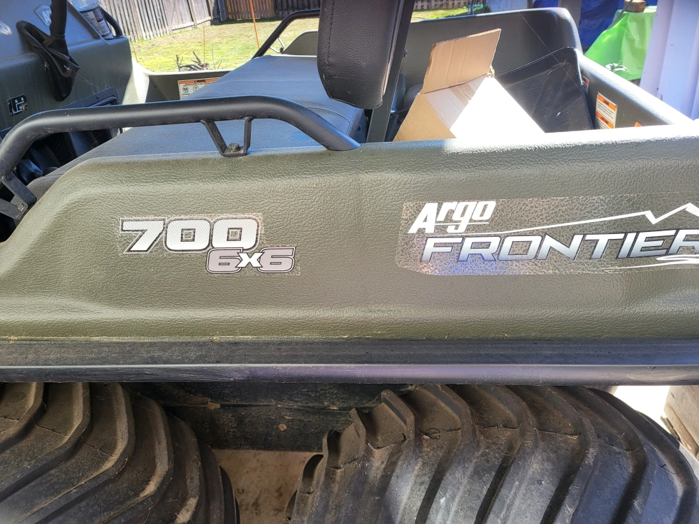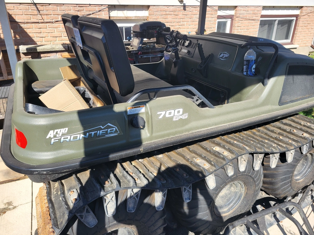 Selling an Argo Frontier 700 6x6 amphibious ATV. Great for off-road and water use. Comes with wheel tracks that can be put on or taken off and a plow for winter time. The Argo and Plow are in used condition but still in working order will need a trailer to transport and be securely strapped down