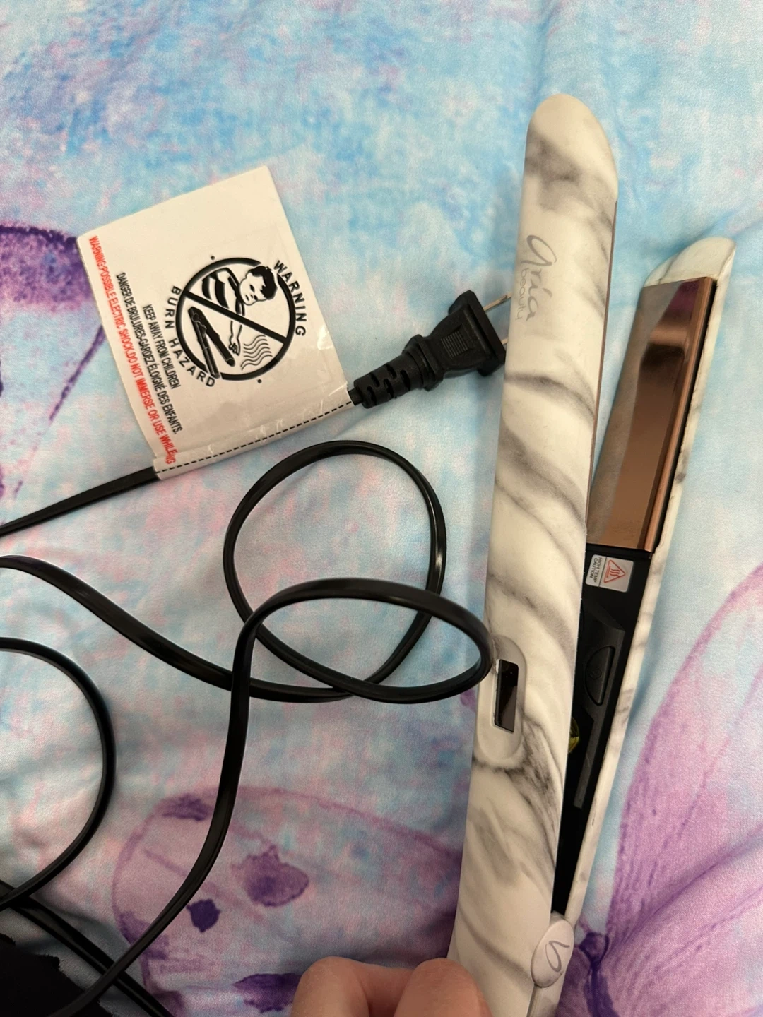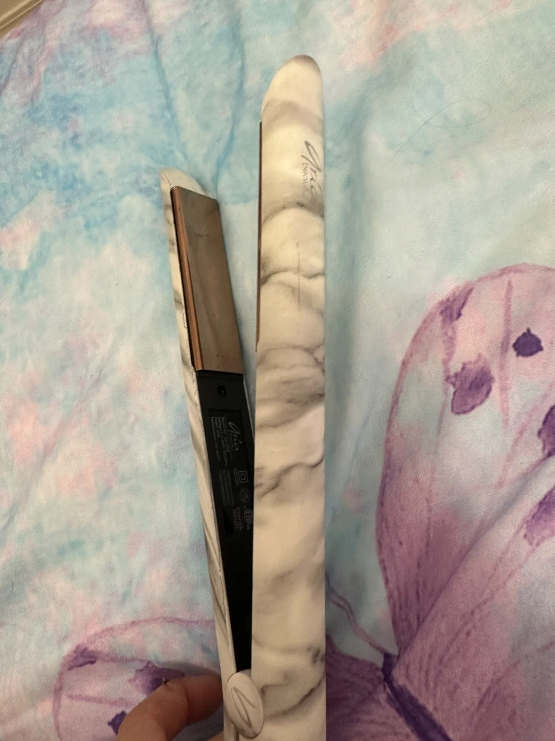 53Selling an Aria Beauty flat iron with a stylish marble design. It's in great condition and ready to help you achieve your favourite hairstyles!