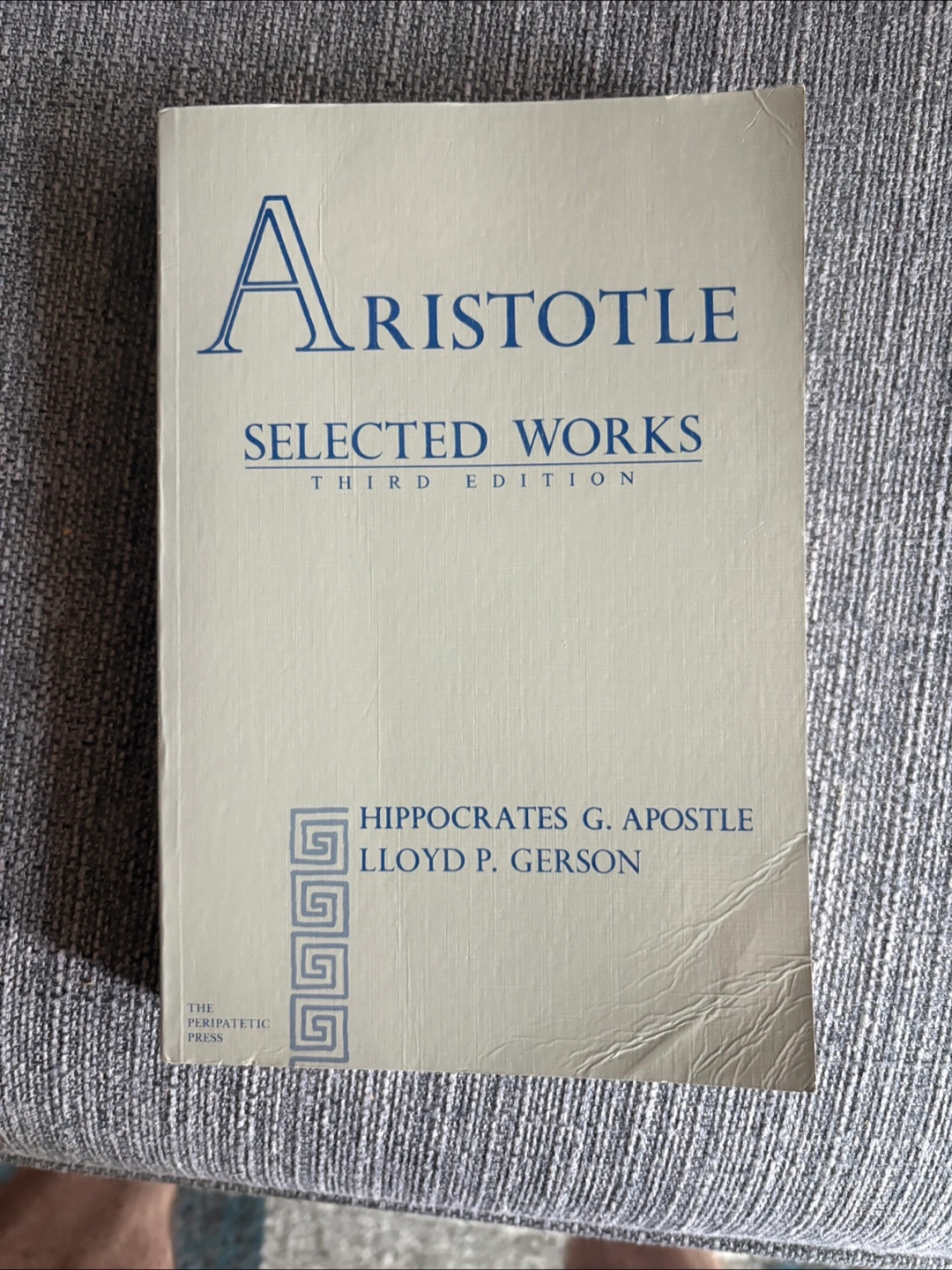 Selling a copy of Aristotle's Selected Works, Third Edition. This book is a compilation of Aristotle's writings.