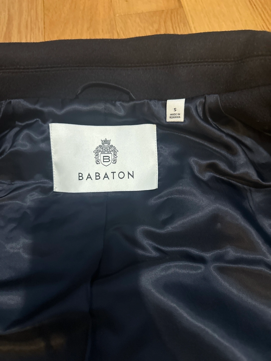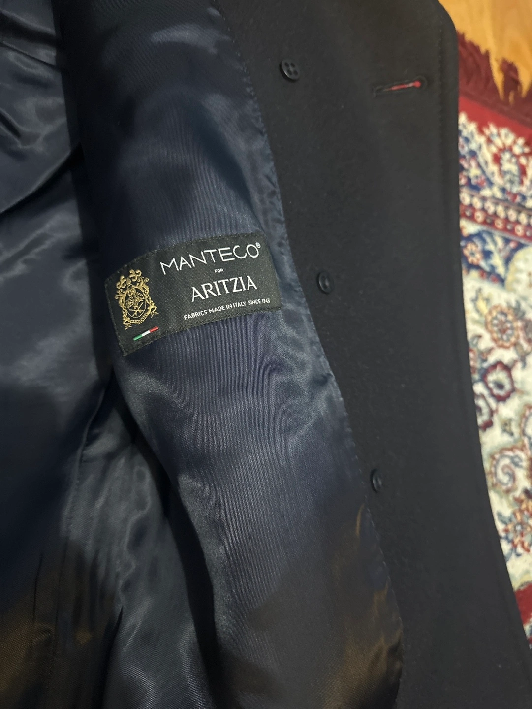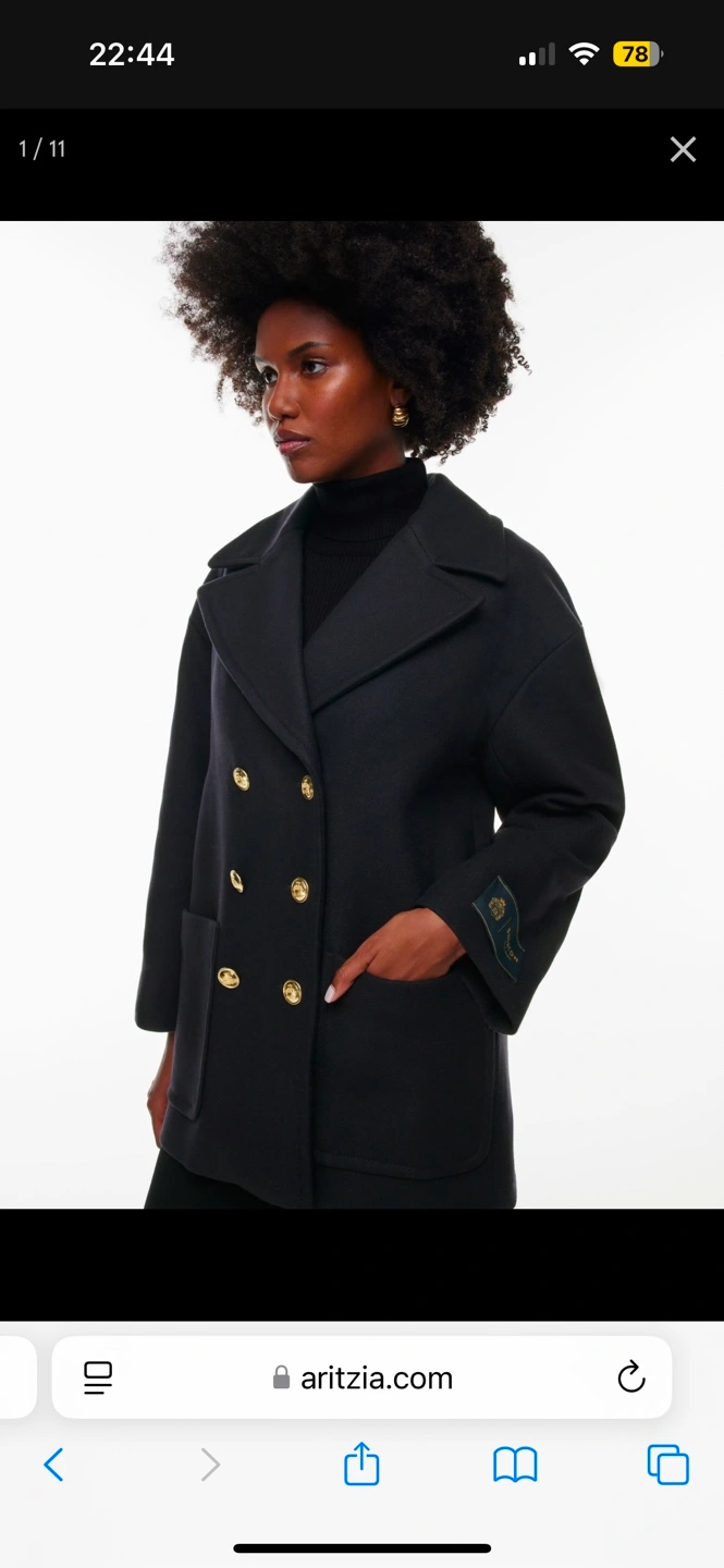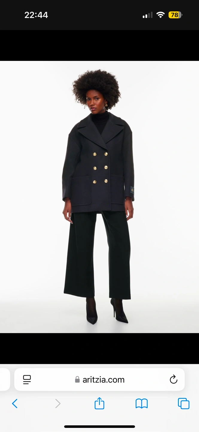 399Black wool coat with gold buttons. Relaxed fit. Pockets on the front and inside. Vegan chamois lining.