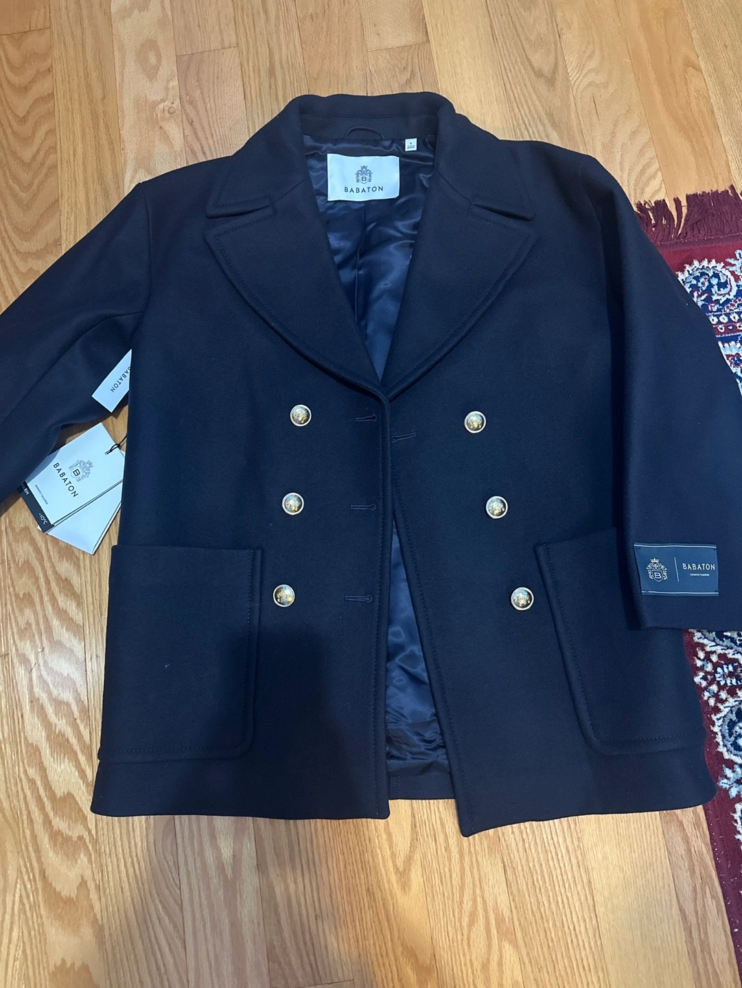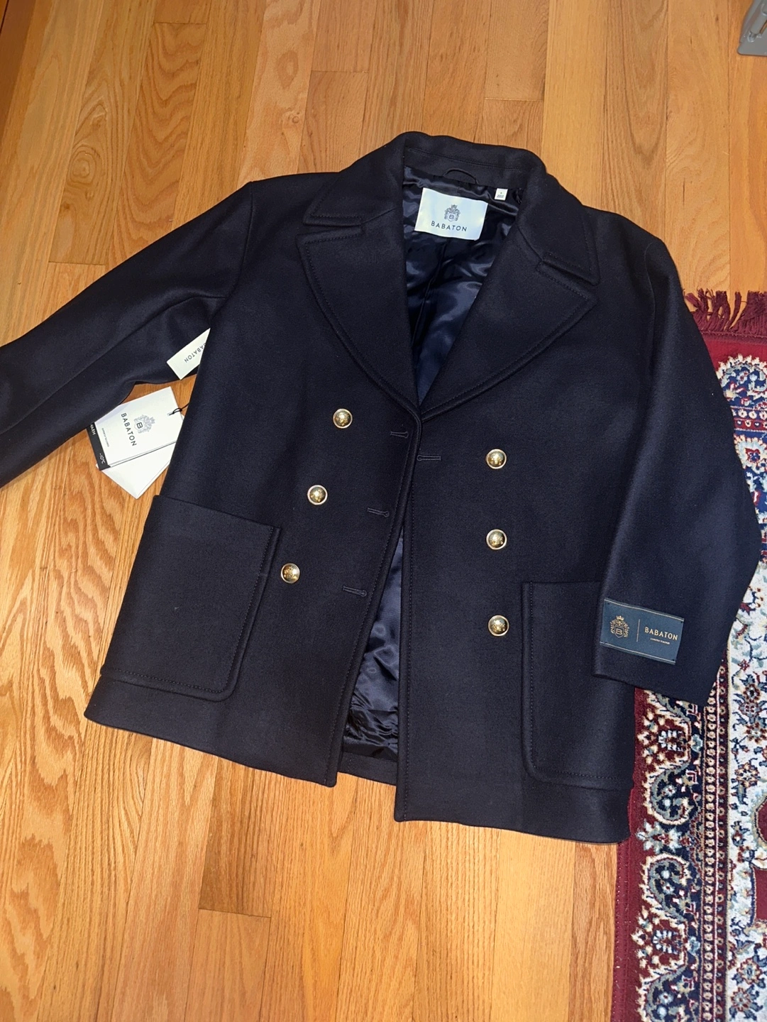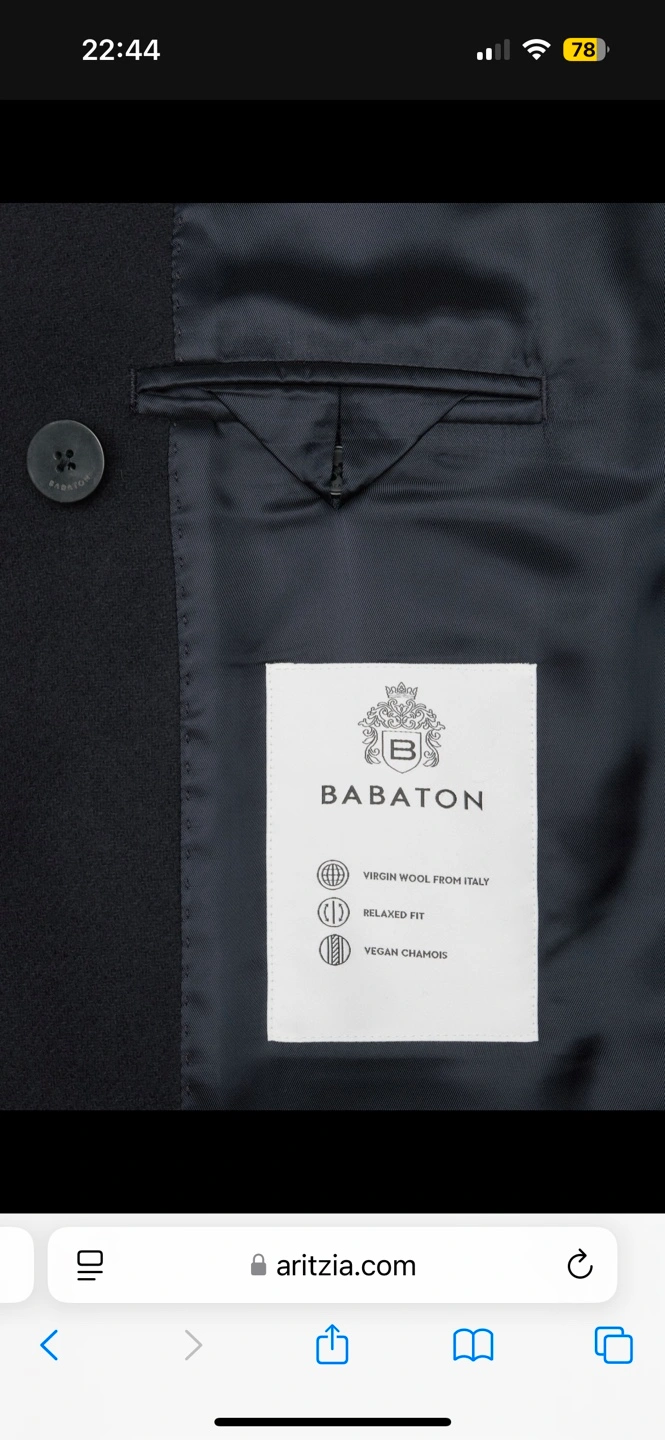 399Black wool coat with gold buttons. Relaxed fit. Pockets on the front and inside. Vegan chamois lining.