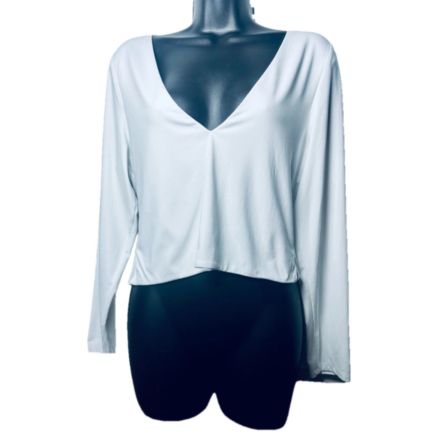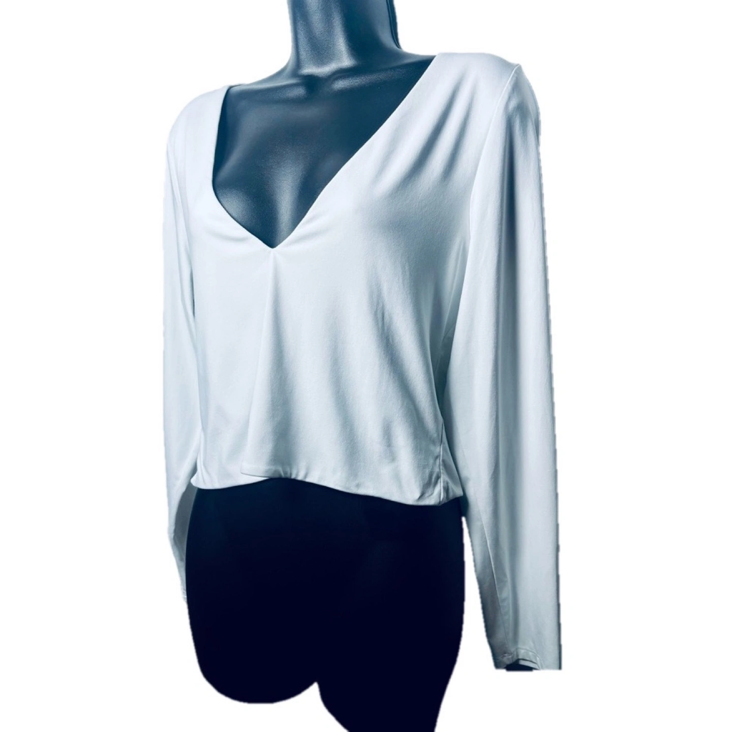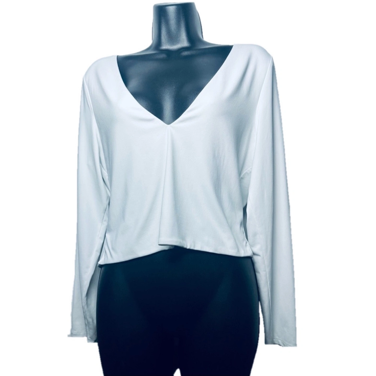 234This elegant white V-neck top is perfect for any occasion. Its simple yet sophisticated design makes it a versatile addition to your wardrobe. •Like New No Flaws •Stretchy •Lined •V-Neck Style •Flowy •Not Sheer •Lightweight •No Size Label •Babaton Label Cut from Neckline Measurements: P2P:18”-23” Length:18”