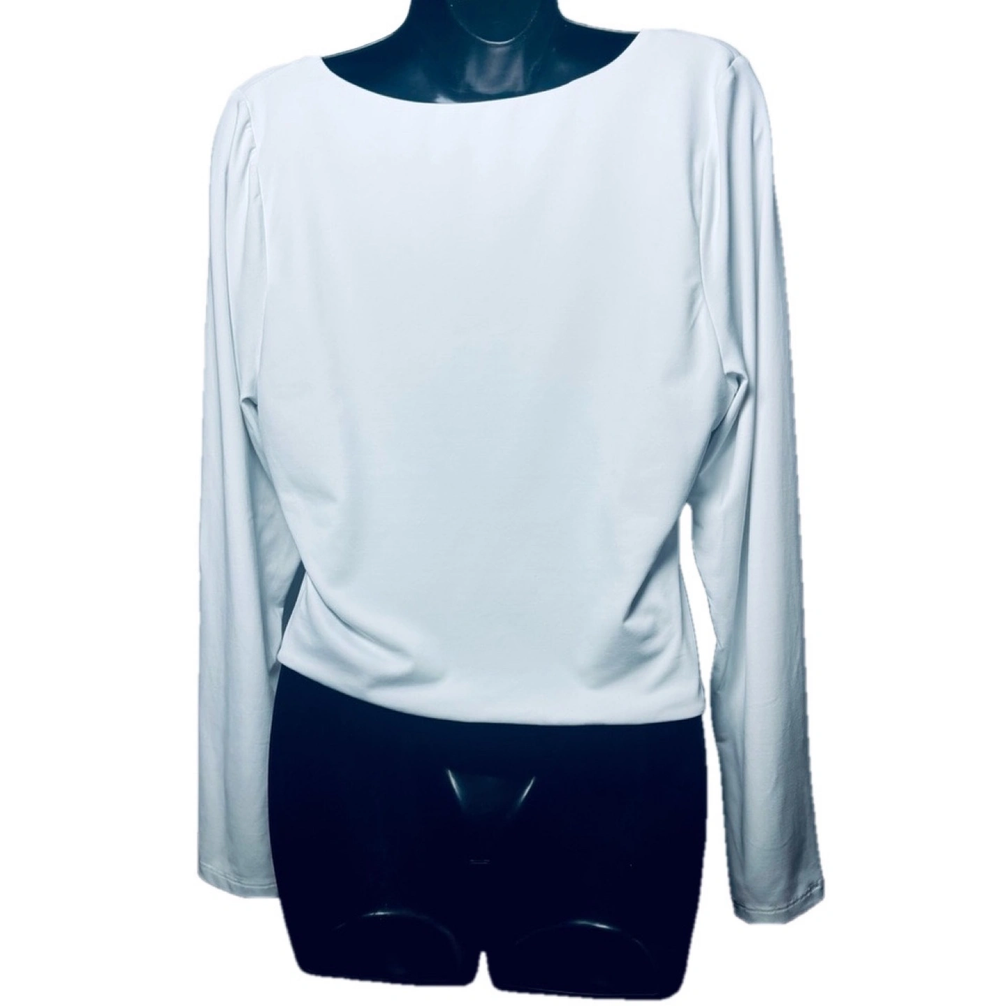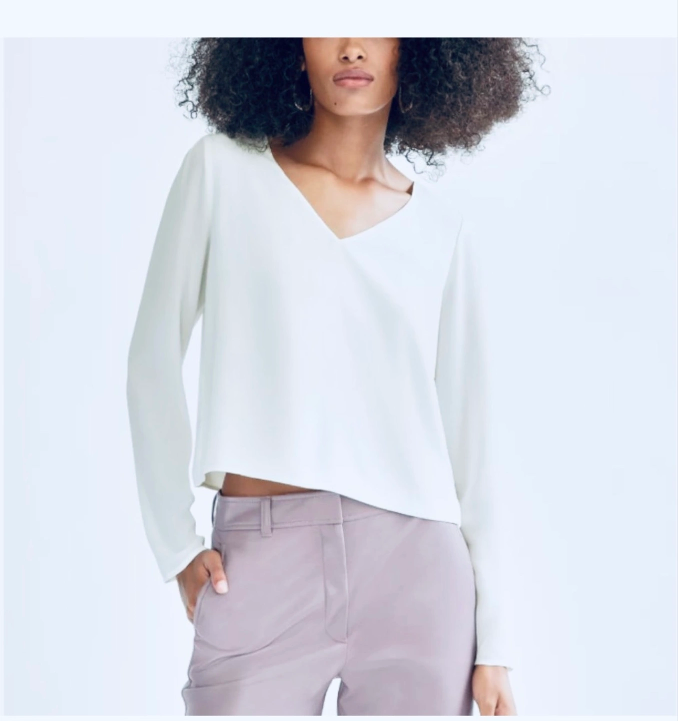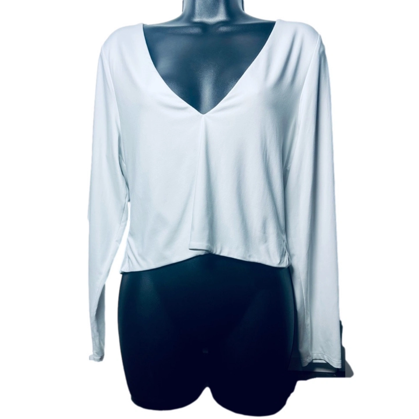 234This elegant white V-neck top is perfect for any occasion. Its simple yet sophisticated design makes it a versatile addition to your wardrobe. •Like New No Flaws •Stretchy •Lined •V-Neck Style •Flowy •Not Sheer •Lightweight •No Size Label •Babaton Label Cut from Neckline Measurements: P2P:18”-23” Length:18”