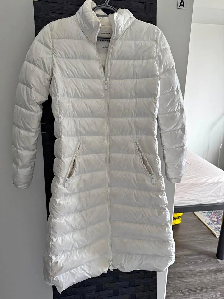 XS Aritzia Babaton White Long Puffer Coat Suitable for temperatures reaching -10C. Original price was 280. Ready to wear - washed and dried. Comes with a hood. Open to offers!