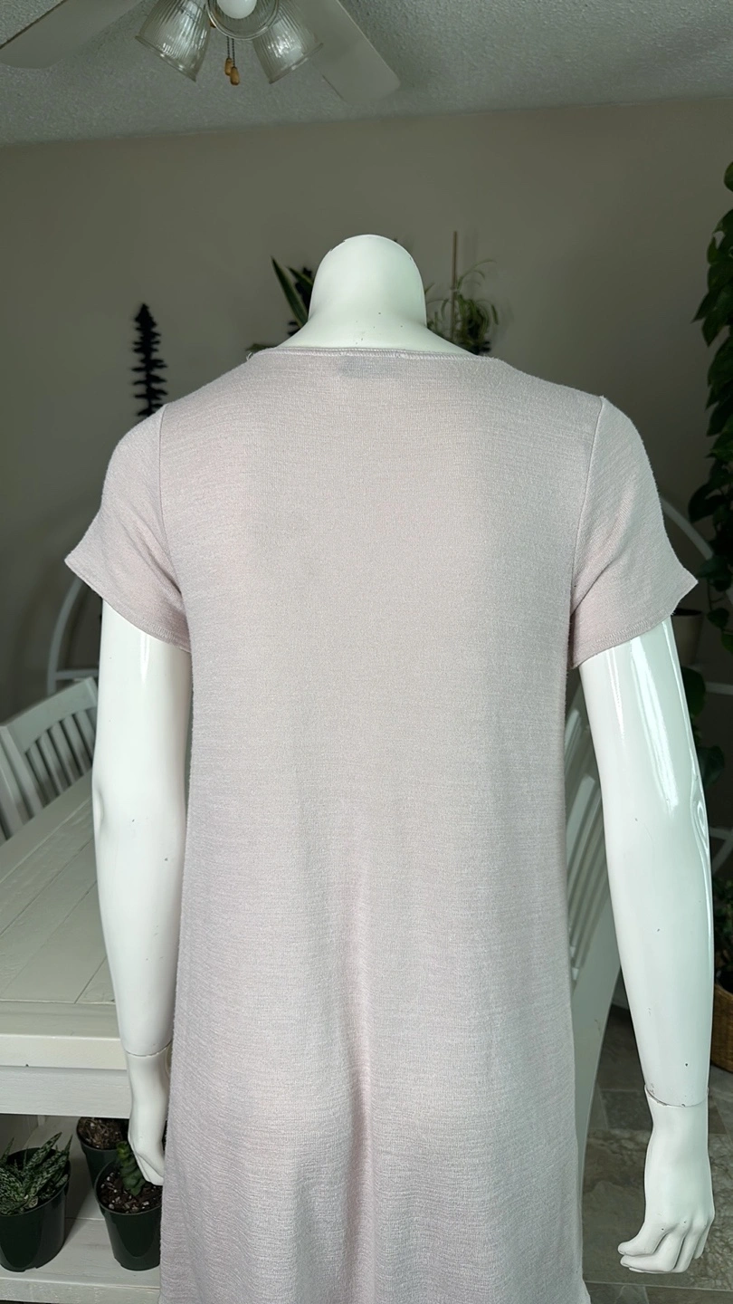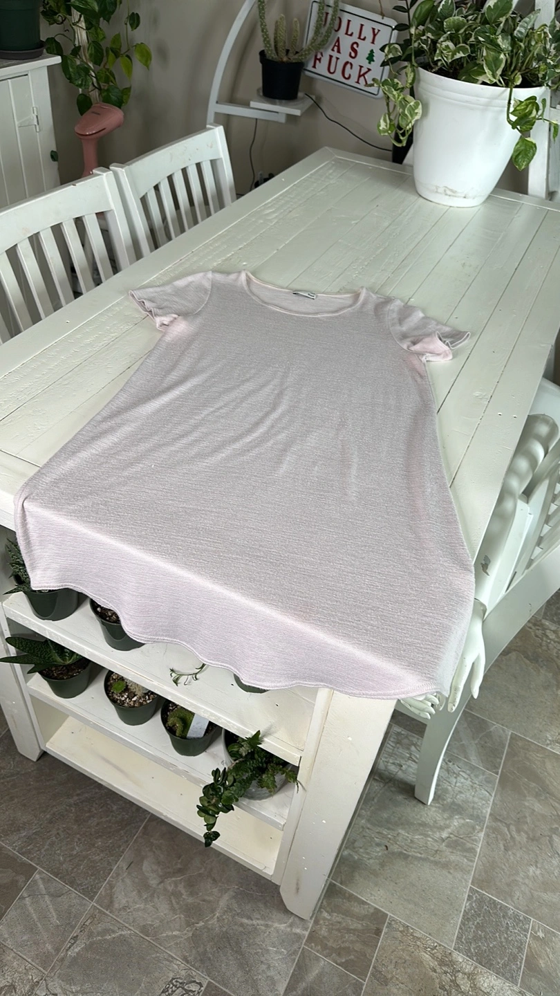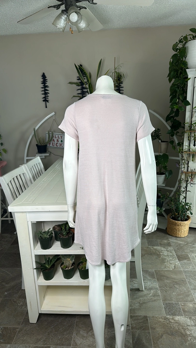 10Short-sleeved, pink, t-shirt dress. Size XS. This is a t-shirt dress with a slightly flared silhouette. It's made from Reposa™ — a luxe jersey knit that hangs beautifully and skims the body Size Med