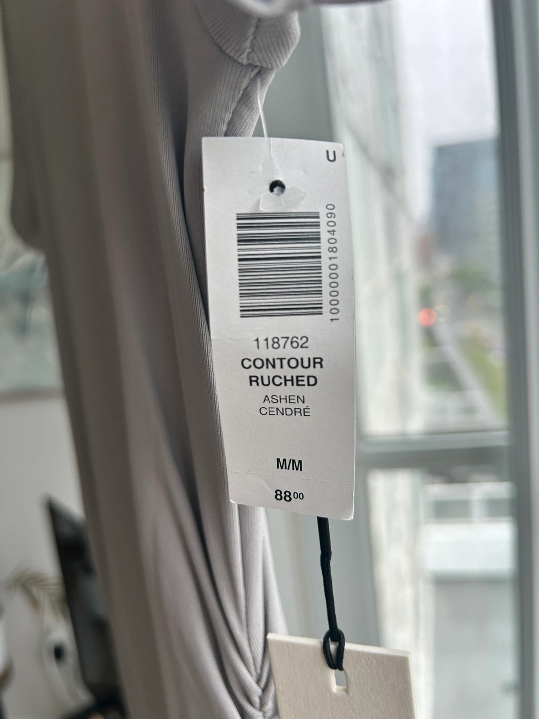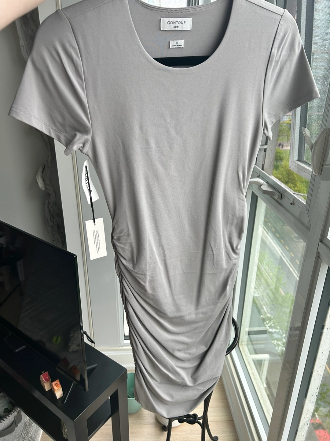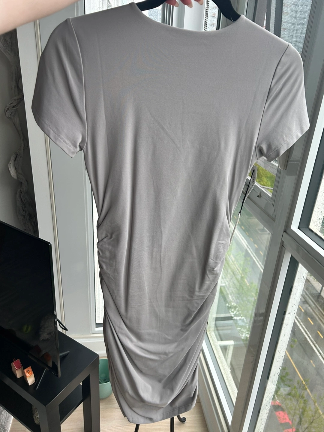 33Grey ruched mini dress. Short sleeves. Medium size. New with tags.
