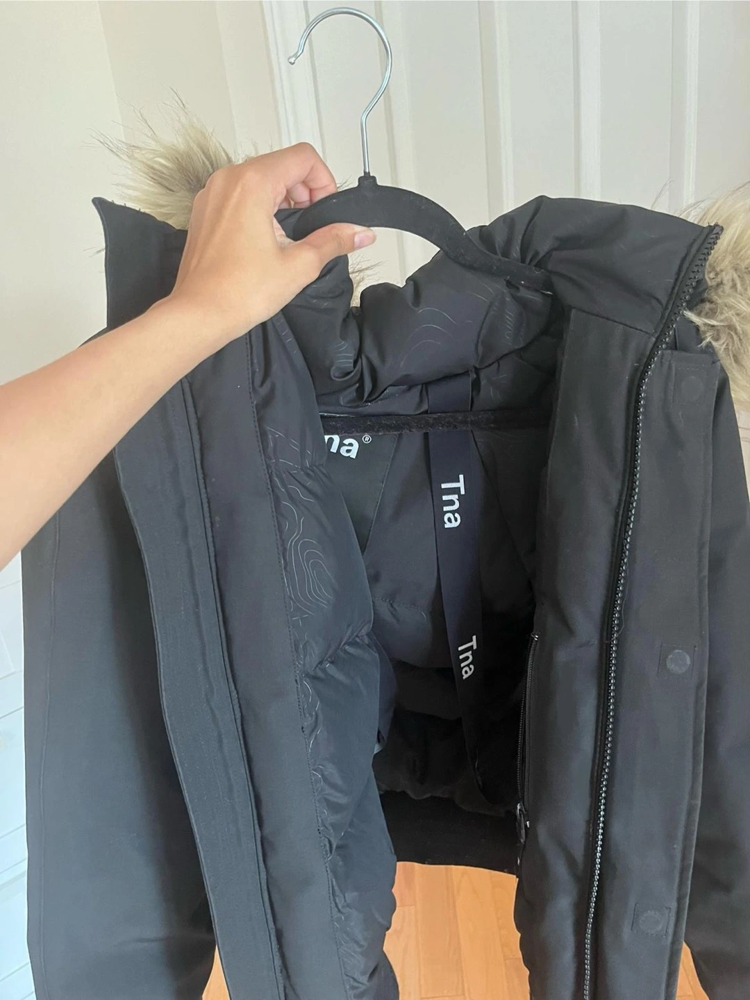 - TNA Aritzia Small Resort Parka - Very similar style to a Canada Goose jacket - Only wore a couple times - Has weight to it since there’s magnets to close the jacket instead of buttons (very useful for warmth in the winter) Pick up location Eglinton and Erin Mills