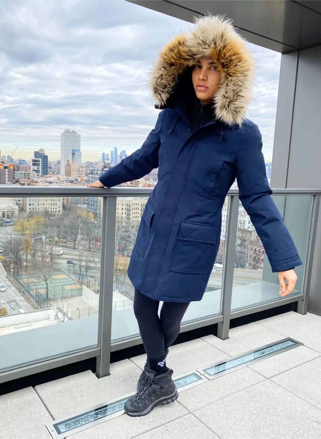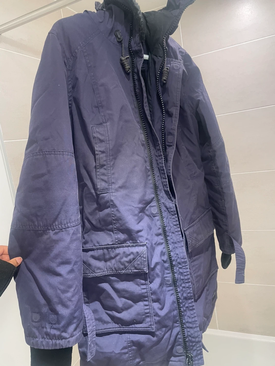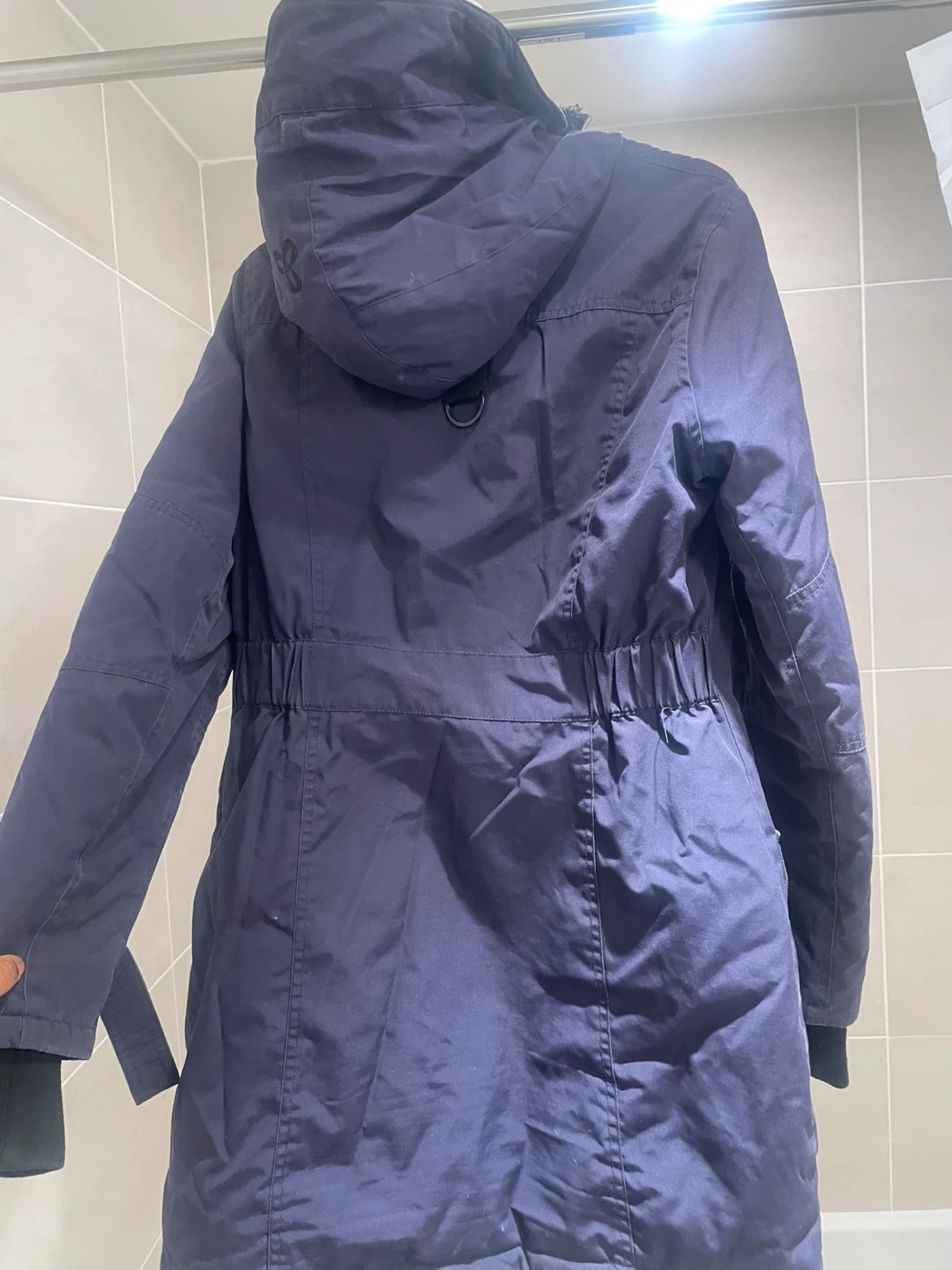 10Selling a Aritzia Bancroft parka in navy blue! It's a stylish and warm jacket, perfect for the Canadian winter. Gently used (Fur lining on the hoodie is not available) very warm still