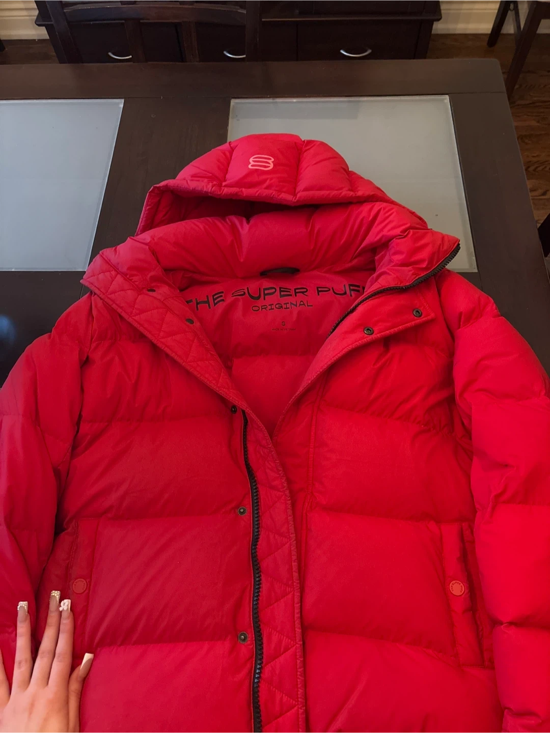 15Selling a red Super Puff jacket in size small. It's in good condition and ready to keep you warm this winter! The bright red colour is sure to make a statement.