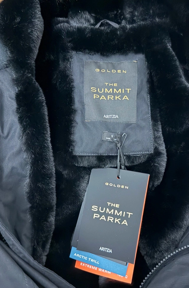 60Wrap yourself in warmth with this Aritzia Summit Parka, designed to brave the Canadian elements in style, featuring a sleek black exterior. This parka is in new condition, ready to be your go-to winter essential. Here are some additional details about the parka: * Brand: Aritzia * Model: The Summit Parka * Colour: Black * Size: S * Condition: New with tags If you've been searching for the perfect blend of fashion and function, look no further. Aritzia's Summit Parka is here to save the day, one stylish step at a time. And remember, if the ad is still up, it's still available!