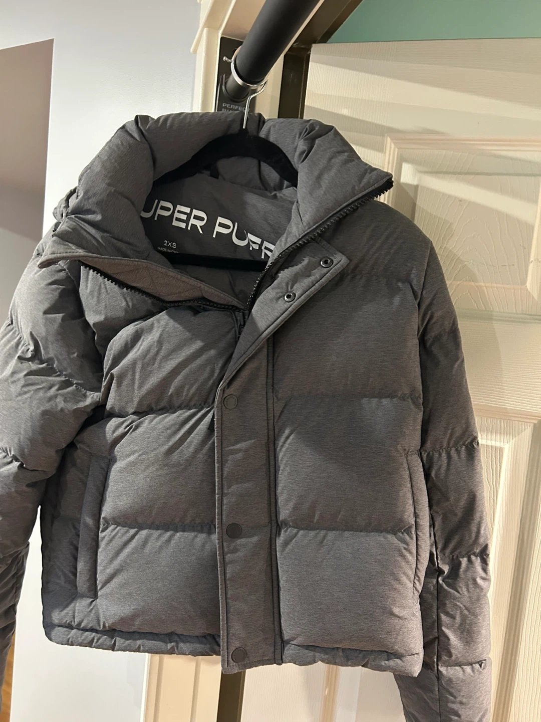 29Selling an Aritzia Super Puff in size 2XS! It's in perfect condition, never worn. Charcoal, heather grey/black color. Moving to a warm climate so I won’t wear. Fits like an XS.