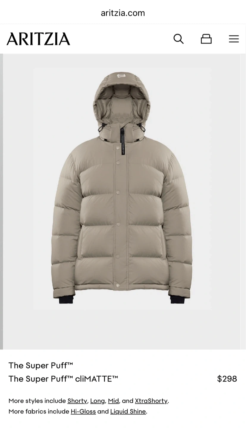 42Brand new with tag Aritzia The Super Puff CliMATTE jacket! Originally bought for $298+ Tax I missed the time frame when it was possible to change. My loss your gain