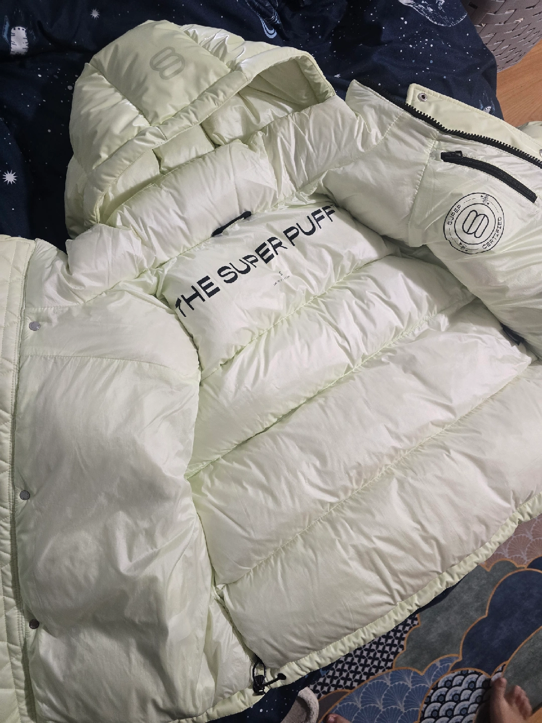 Selling an Aritzia The Super Puff™ jacket. It's brand new and selling at lowering price than retail! It's a stylish and warm choice for those winter days. The color is very light green, it looks like white in the picture due to my camera's effect.